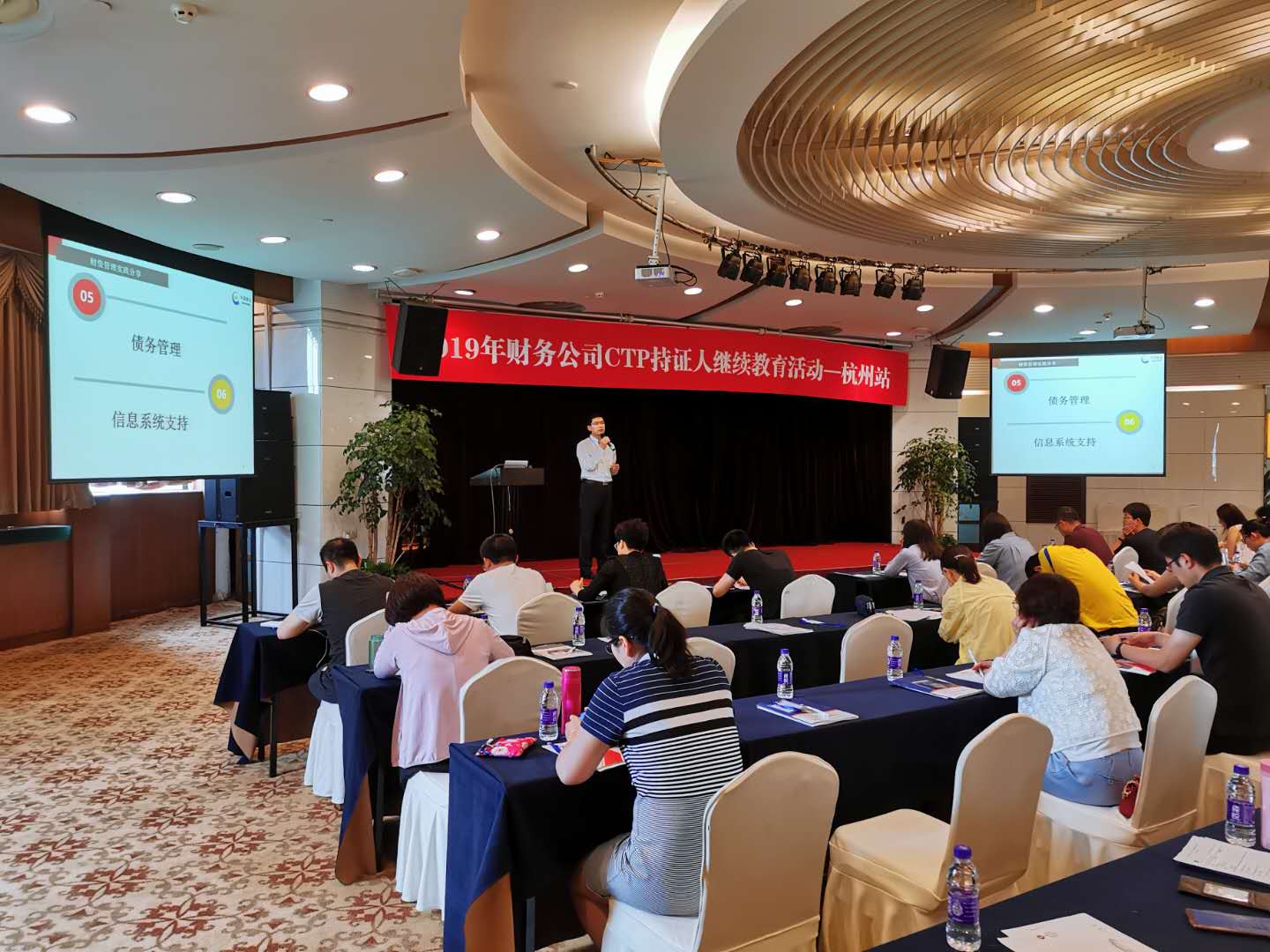 2019年6月21日,中国财协联合北京当代金融培训公司在杭州举办了2019年第一期财务公司行业CTP持证人继续教育专场活动,近80余名持证人参加了活动。活动邀请了通用电气的司库专家为学员分享了跨国集团公司司库管理的最佳实践,中车财务公司、中国黄金财务公司、TCL财务公司的三位持证人代表也做了业务分享。活动得到了参会持证人的一致好评。