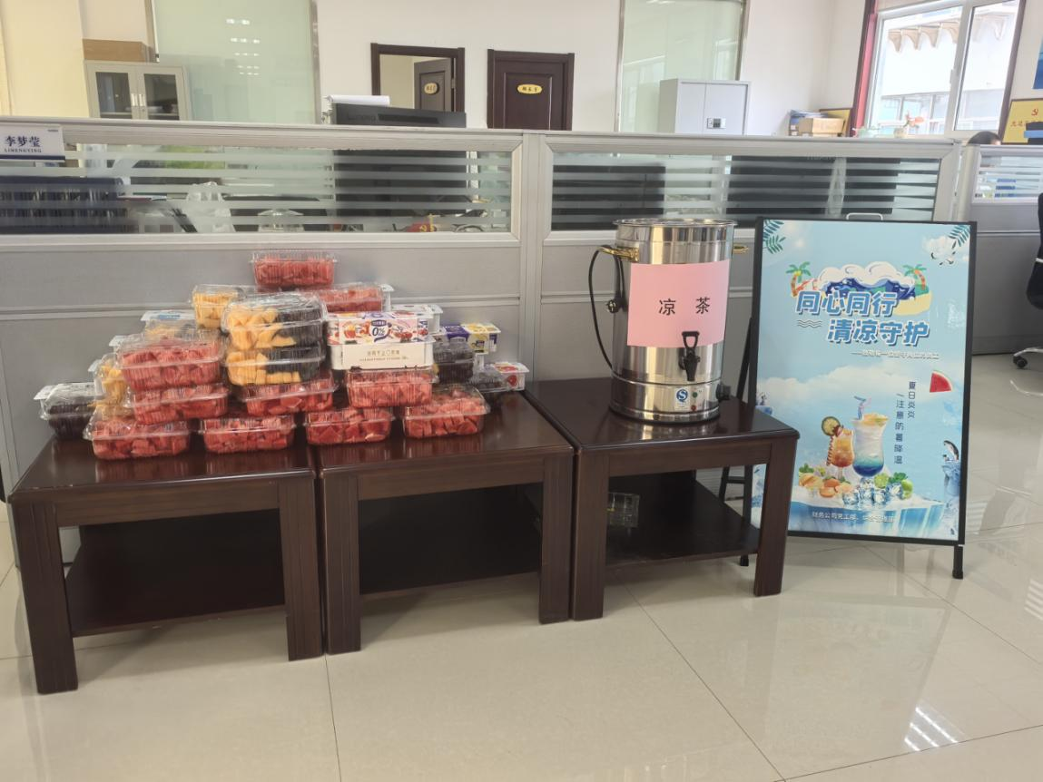 与此同时,公司将“为群众办好事、办实事”作为出发点和落脚点。管理层深入各部门开展调研,精准掌握员工需求,特别是针对异地工作员工,在吃、住、行等方方面面予以细致周到的保障,解决大家的后顾之忧。财务公司启动了“同心同行 清凉守护”主题关爱活动。连日来,公司精心准备了美味可口的水果、清凉解暑的凉茶、开胃健康的酸奶等食品,由管理层亲自送至各部门及业务一线,在送去一份份清凉的同时,更传递了公司深切的关怀与慰问。这份“清凉限定”的关怀,不仅是对员工身体健康的呵护,更是对大家辛勤付出的高度认可,进一步增强了员工的凝聚力、向心力和对企业的归属感,营造了和谐温馨的工作氛围。