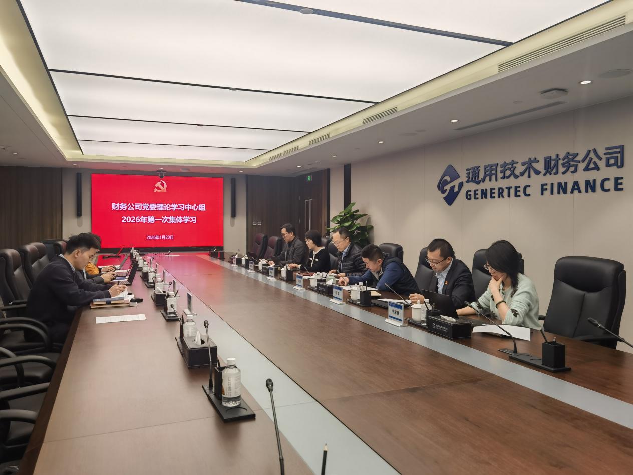 1月29日上午,通用技术财务公司党委召开理论学习中心组2026年第一次集体学习暨2025年度民主生活会会前专题学习。公司党委书记、总经理岳海涛主持会议,公司领导班子成员,办公室、党群人力部、纪检稽核部有关负责同志,团支部委员参加学习。与会人员认真学习了习近平总书记关于党的建设的重要思想、关于党的自我革命的重要思想、关于加强党的纪律建设论述摘编、关于加强党的作风建设论述摘编、《习近平谈治国理政》第五卷和党章、纪律处分条例等相关内容,集体学习了习近平总书记在中央政治局民主生活会上的重要讲话精神、《推进党的自我革命要做到“五个进一步到位”》署名文章等内容。公司领导班子成员围绕“深入学习贯彻习近平新时代中国特色社会主义思想,全面贯彻落实党的二十届四中全会精神,锲而不舍落实中央八项规定精神,推进作风建设常态化长效化,切实把思想和行动统一到党中央决策部署上来,打牢开好民主生活会的思想基础”主题,开展专题研讨。