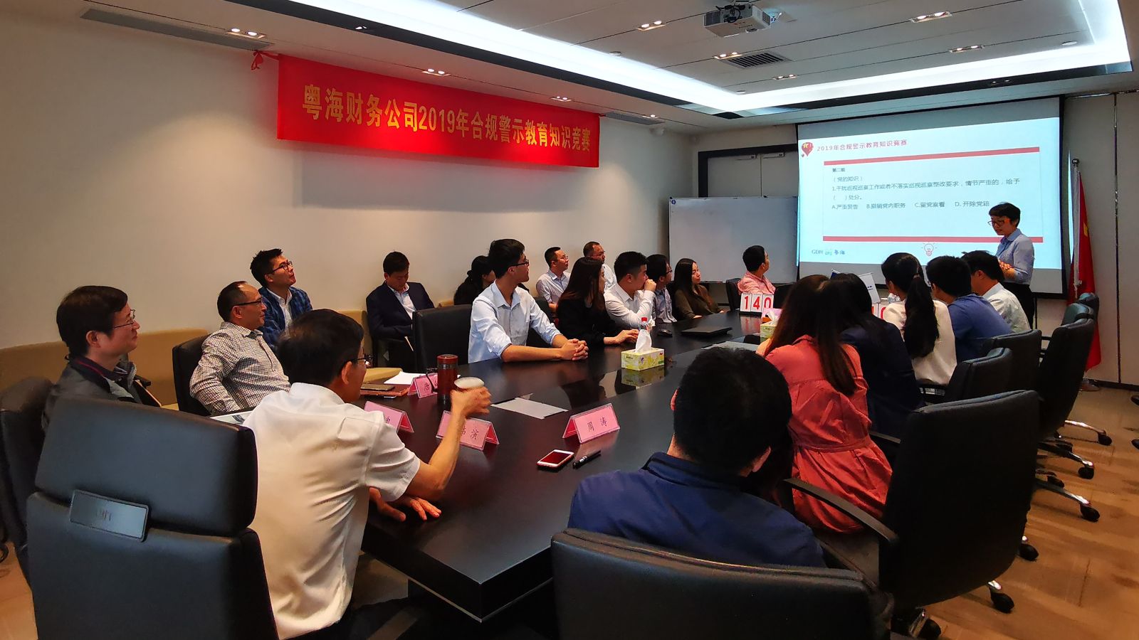 2019年5月28日,为进一步提高员工“知敬畏、守底线”的合规意识,根植合规文化,粤海集团财务有限公司(下称粤海财务公司)组织全体员工开展2019年合规警示教育知识竞赛。