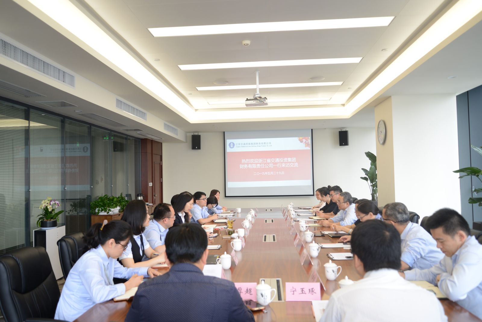 2019年5月29日,浙江省交通投资集团财务公司董事长钱文海一行到江苏交通控股集团财务公司考察调研。江苏交通控股集团财务公司领导及有关部门负责人在3119会议室与客人进行了交流。