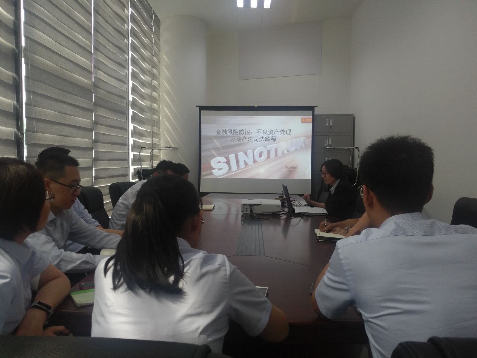 为适应当前经济形势和严格的监管环境,不断提升金融风险防控管理工作水平和不良资产处置能力,更好的服务于集团上游产业链小微企业发展,7月4日,中国重汽财务有限公司(以下简称“重汽财务公司”)组织开展了金融风险防控培训,主要内容为金融风险环境及不良资产处置、破产重整、破产法司法解释三,各部门20余人参加此次培训。
