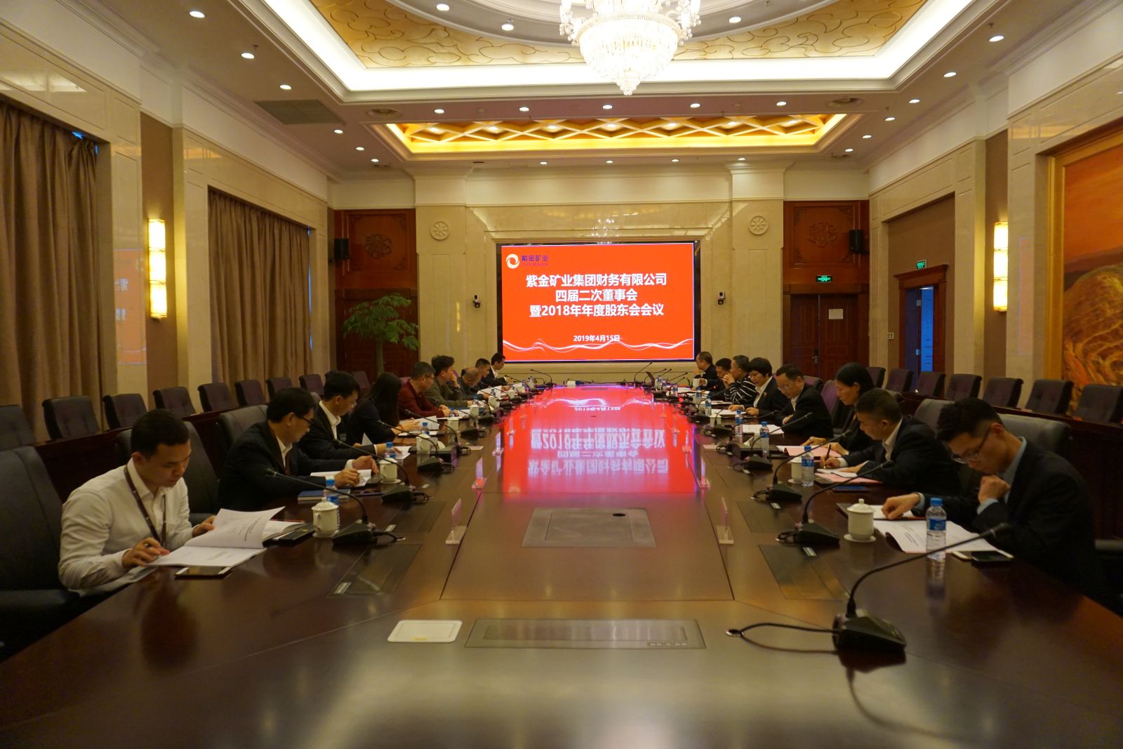 2019年4月15日,紫金财务公司召开四届二次董事会会议暨年度股东大会,会议由集团副总裁兼财务总监、财务公司董事长林红英主持,福建银保监局非银处、龙岩银保监分局相关领导到会指导,公司监事、高管及全体中层列席了会议。