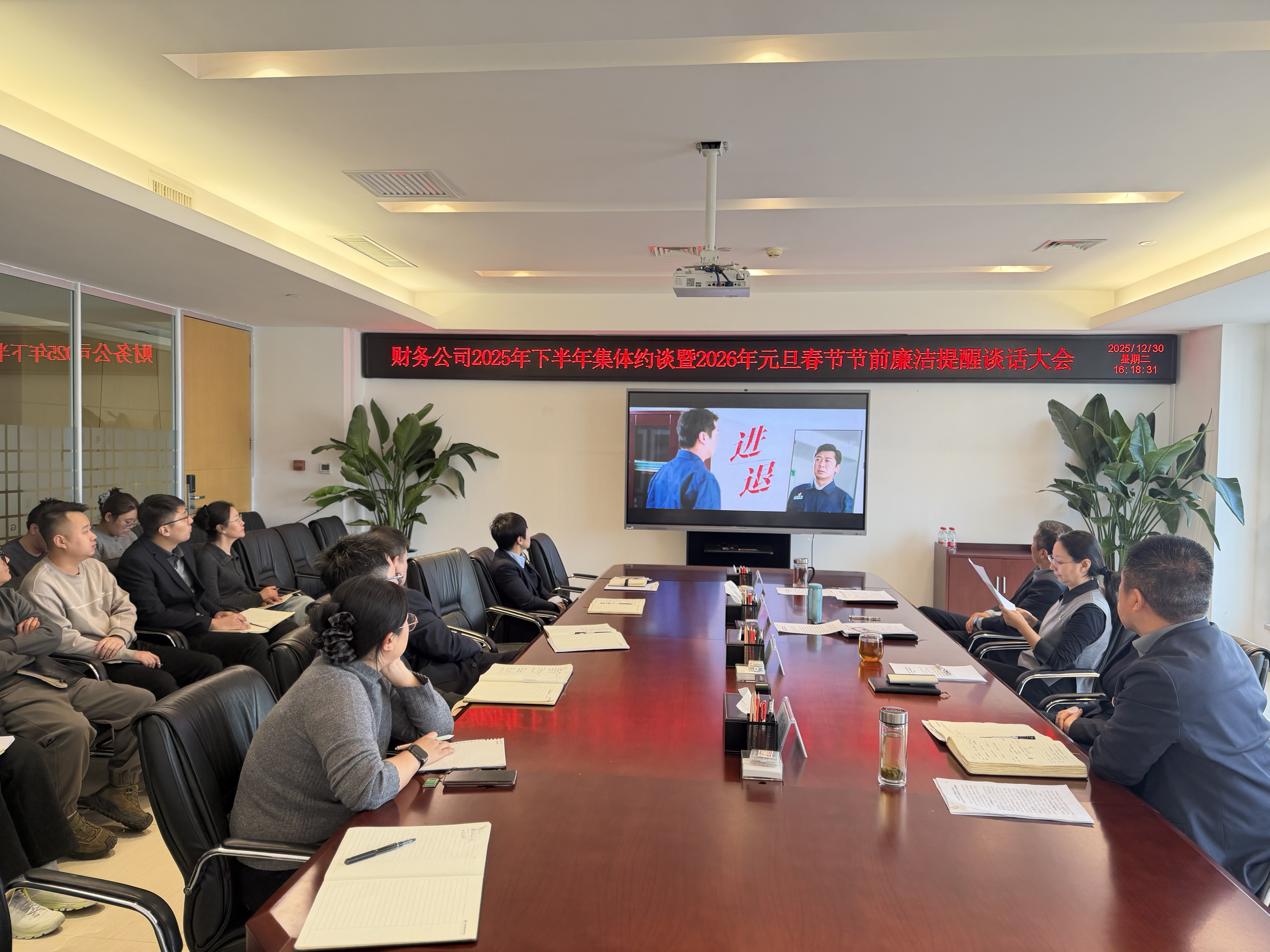 12月30日,甘肃电投财务公司召开2025年下半年集体约谈暨2026年元旦春节节前廉洁提醒谈话会议。会议由公司纪委书记寇兴魁主持并作廉洁提醒,党委书记、董事长赵莉讲话,全体员工参加会议。