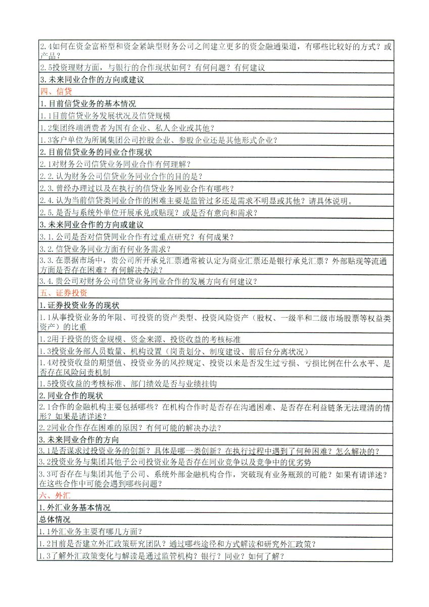附件:关于印发“财务公司金融同业业务合作研究”课题调查问卷的通知