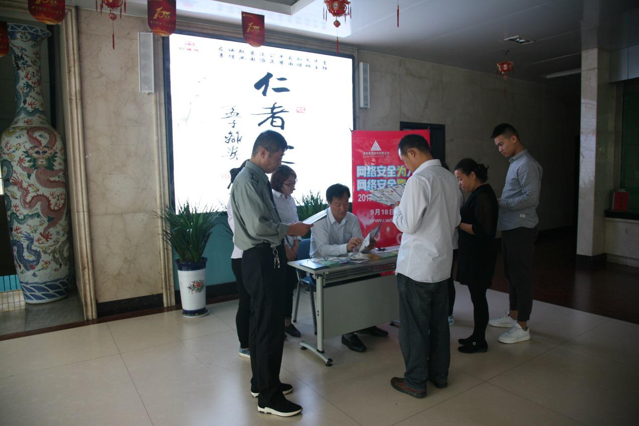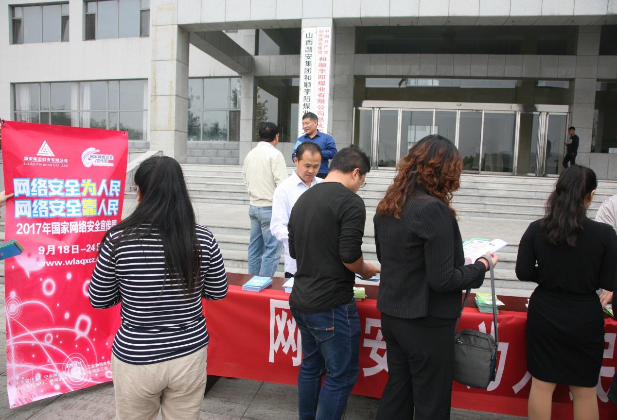 9月16日至9月24日是国家网络安全宣传周,根据监管部门的要求和公司安排,公司总经理李霞、副总经理刘天义率领信息技术部、稽核风险部、信贷管理部组成的宣传小分队前往和顺县李阳煤业进行网络安全宣传。