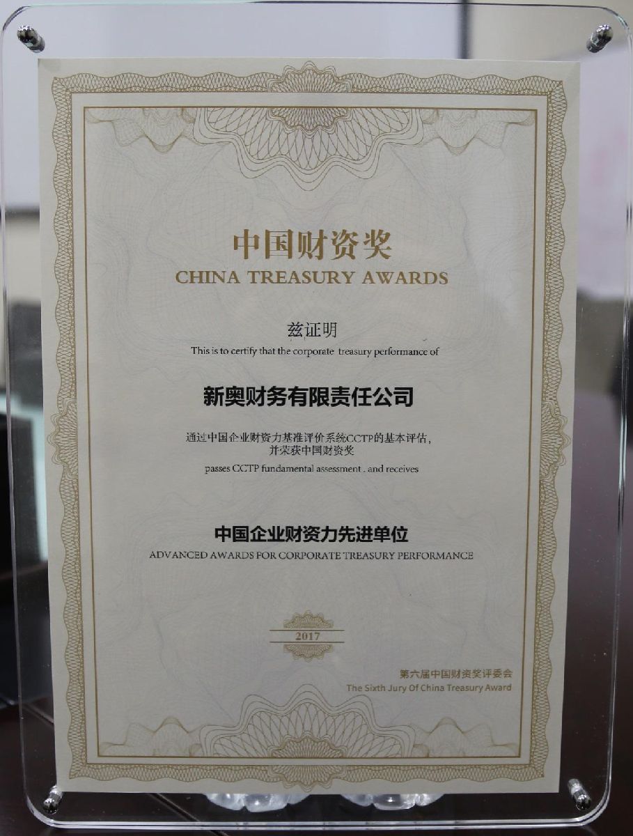 为树立行业标杆,弘扬和提升中国财资力,在此次年会的 “财资之夜”环节,大会以现场颁奖的形式,揭晓了中国财资业界本土最高荣誉——“2017年度中国财资奖”,新奥财务公司凭借推动企金深度连接的最佳成果和实践,获评“CCTM2017中国财资奖—年度中国企业财资力先进单位。