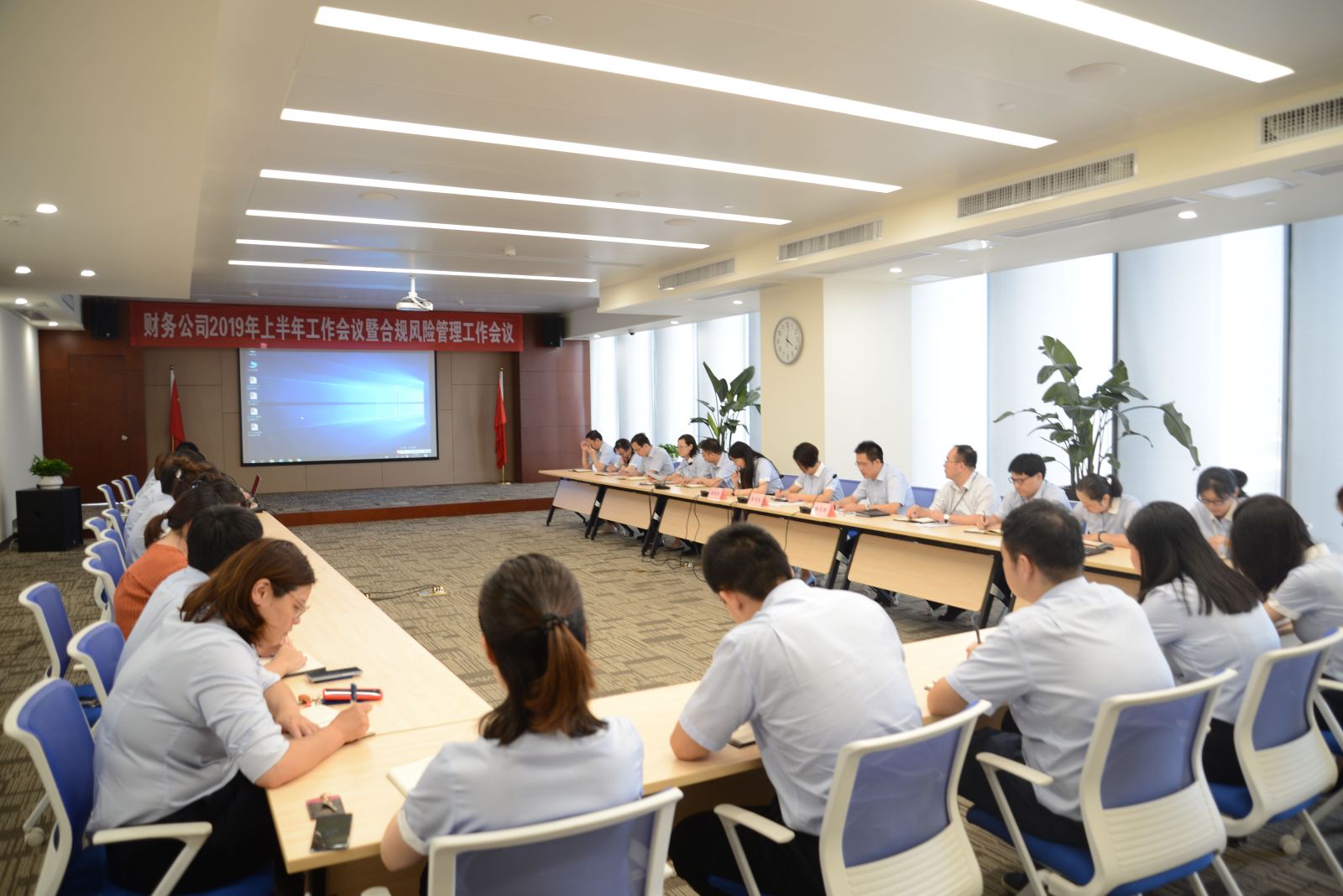 会上,计划财务部、投资银行部、结算部、合规风险部分别就上半年经营情况和资金管理情况、融资集中管理情况、结算集中情况、合规案防和风险管理情况进行了报告,党群工作部通报了2019年上半年各部门绩效考核情况。