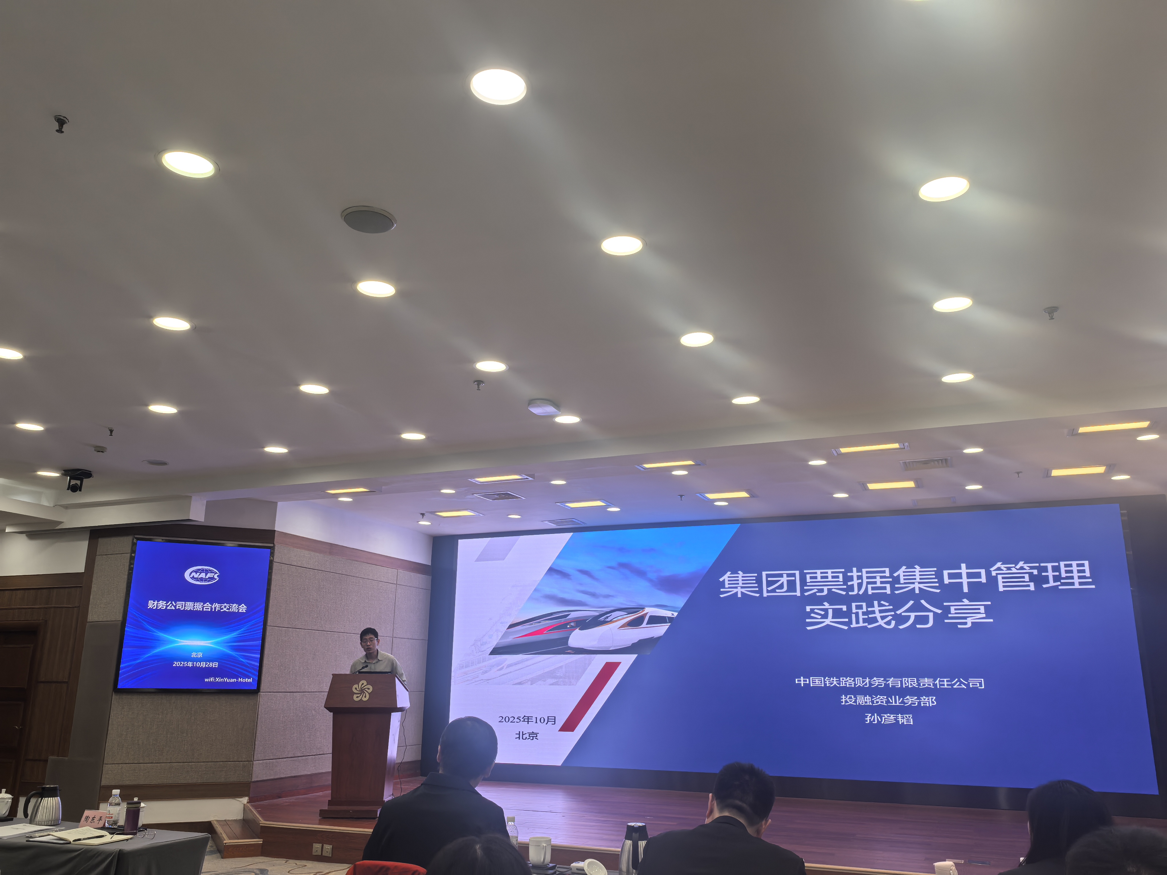 2025年10月28日,中国财务公司协会在北京召开行业票据合作交流会,105家财务公司代表与上海票据交易所专家、供应链平台企业代表齐聚一堂,共商票据业务规范发展路径与跨机构合作机制。中国铁路财务有限责任公司(以下简称铁路财务公司)受邀分享票据集中管理及跨机构合作实践经验。铁路财务公司从集团票据现状和问题出发,介绍集团票据集中管理经验并分享了3项跨机构合作实践。