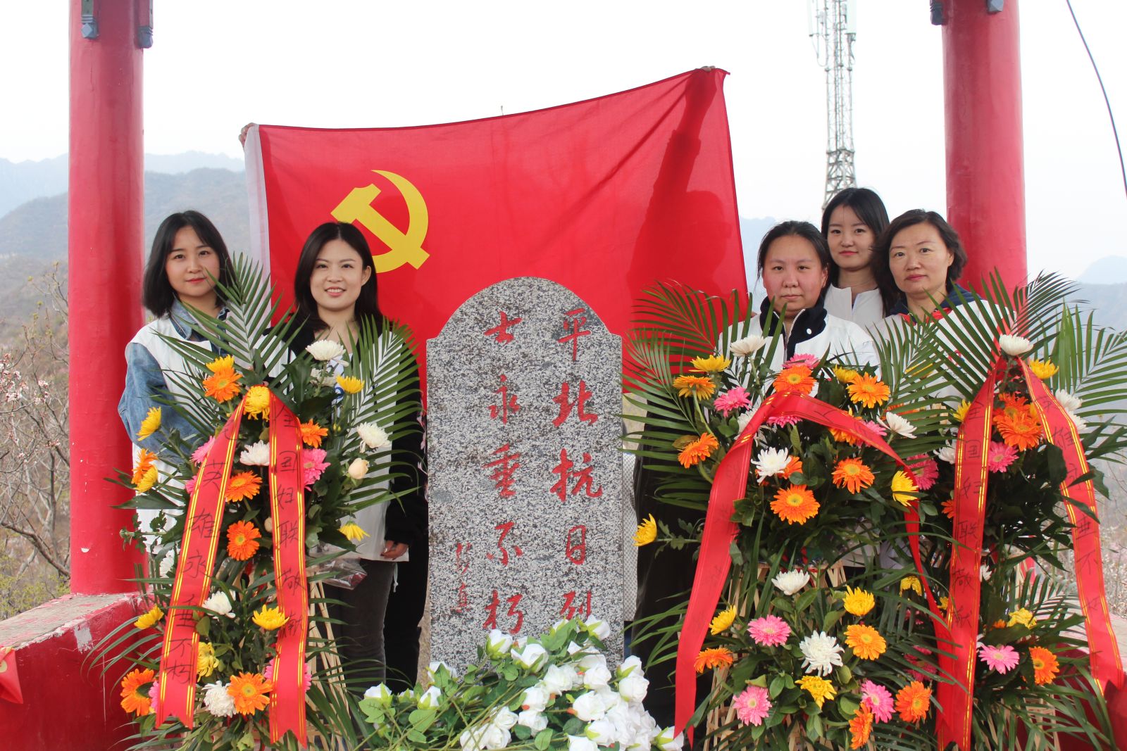 首先,经过近两个小时的攀爬后,巾帼志愿者一行先来到了位于延庆玉渡山顶的平北抗日烈士纪念碑进行了瞻仰活动,聆听了工作人员对此纪念碑的革命事迹,并为烈士纪念碑献上了鲜花。