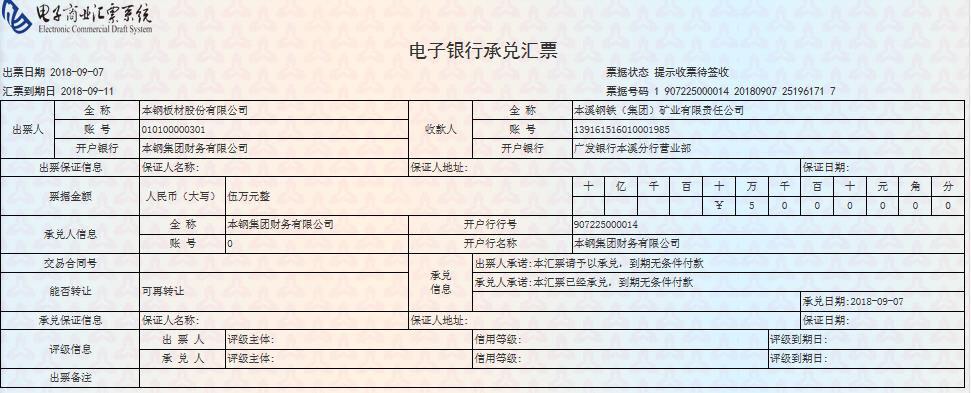 2018年9月7日,本钢财务公司与上海票交所电子商业汇票系统联调接入测试全部通过,“本钢财务公司直连电票系统”正式上线运行。当日,首张由本钢财务公司自有直连电票系统承兑的电子银行承兑汇票成功开出。本钢财务公司信息化建设再上新台阶,金融服务职能开启新篇章。