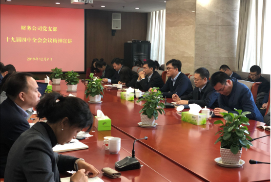 在全国上下深入学习贯彻党的十九届四中全会精神之际,12月9日上午,财务公司党支部组织召开十九届四中全会精神内部宣讲会,公司中层以上领导干部、全体党员参加了会议。