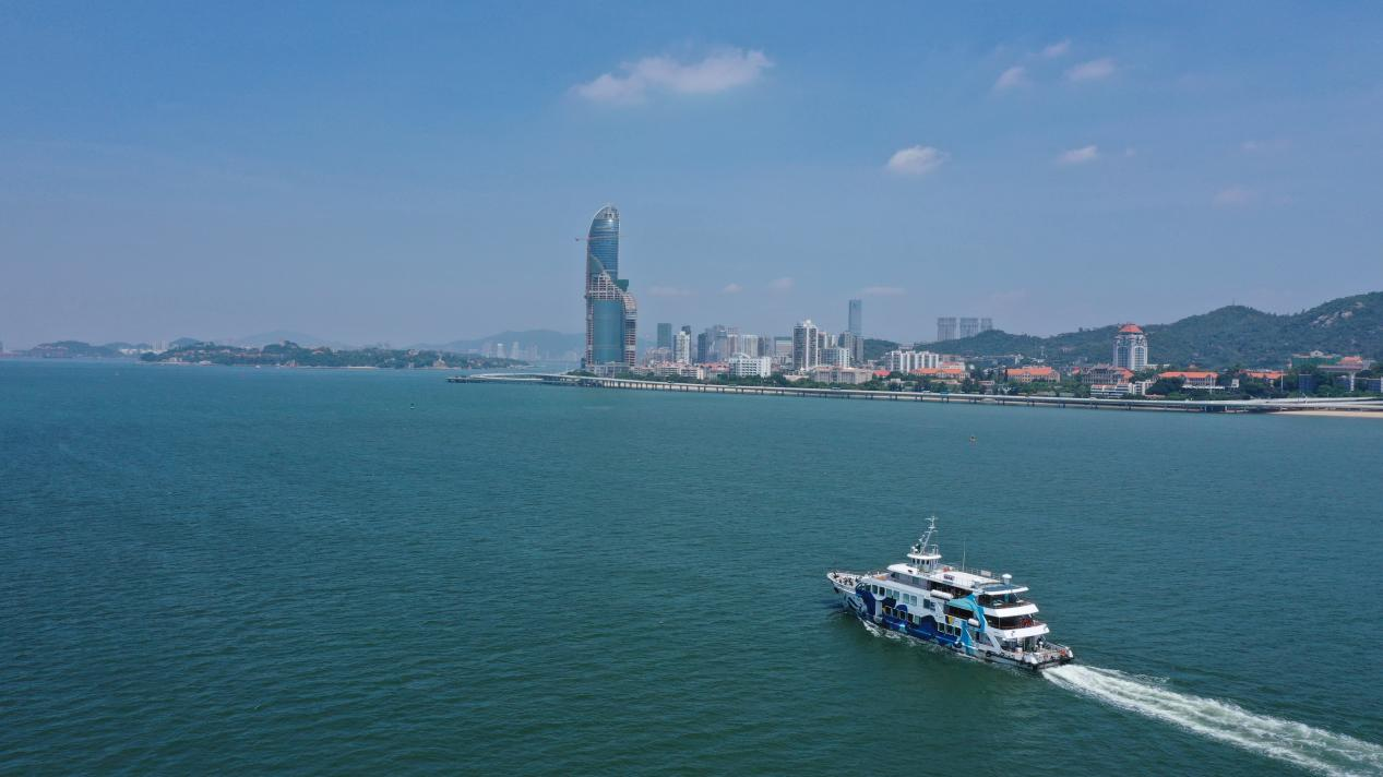 作为深耕厦门海上旅游航线的骨干企业,厦轮客旅持续打造特色船舶与精品航线。此次购建的新型电动船为国家工信部示范项目,将“自主可控”和“绿色发展”理念融入船舶设计与建造,配备磷酸铁锂电池组,单次充电最大续航可达70海里,是零排放、低噪音的环境友好型电动船舶。该船船长46.82米,型宽15米,共300客位,拥有三层甲板空间,造型融入闽南建筑元素,上层建筑外围壁均为360度全透观光落地玻璃幕墙。建成后,该船将投入厦门海上旅游航线,让游客沉浸式体验“人在画中游”的独特观感。