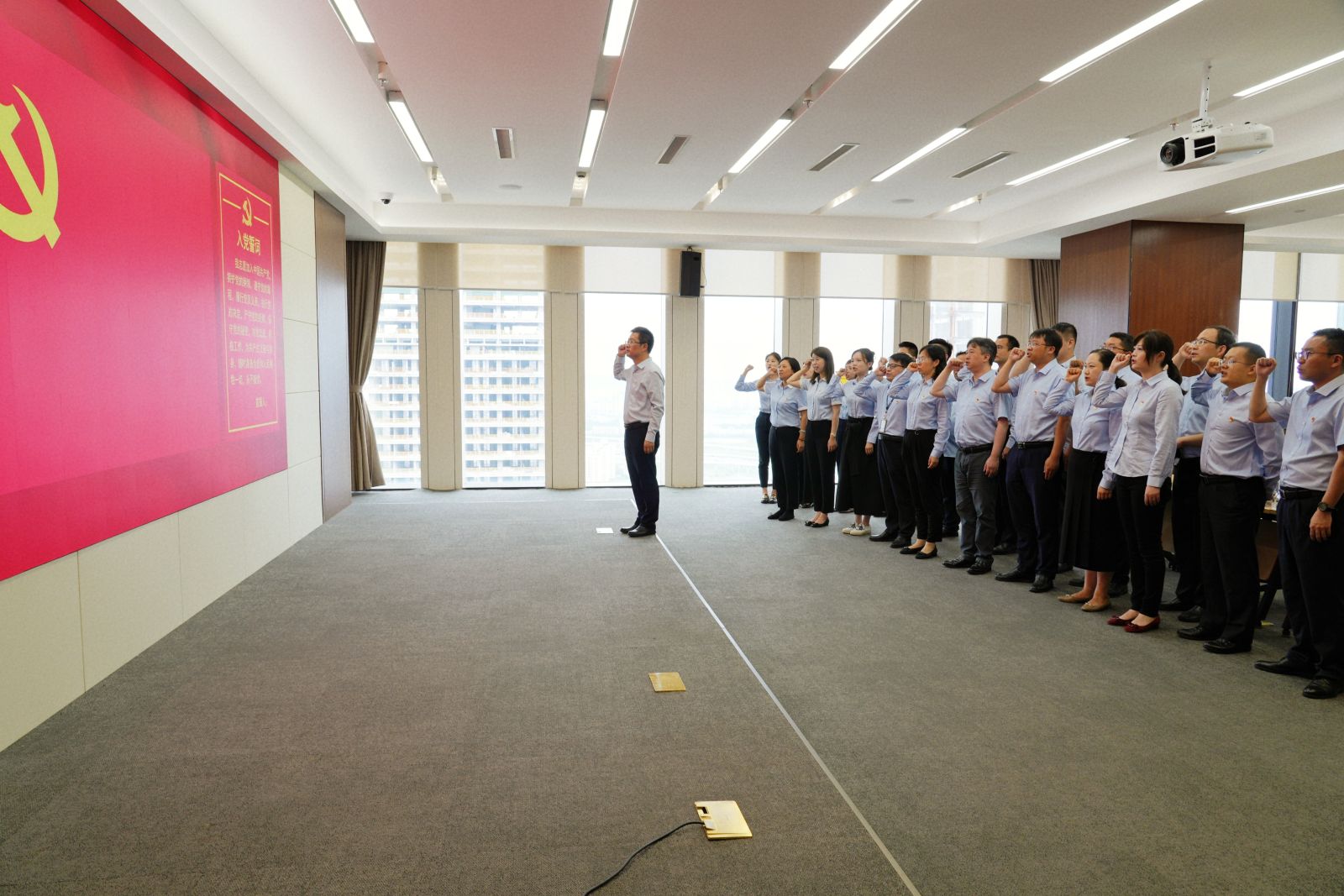 活动中,全体员工观看了党史学习教育短片《我们的航程——红船起航》,党总支书记、董事长杨水明带领全体党员重温了入党誓词。