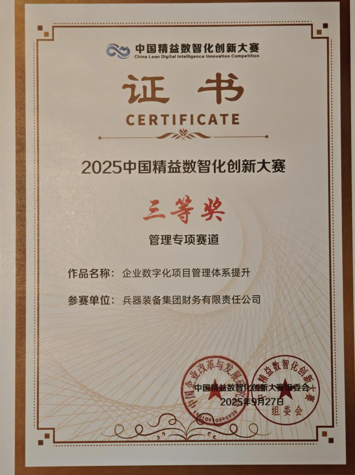 此次获奖是对兵装财务公司持续推进精益管理和数字化实践的充分肯定。财务公司将以此为契机,进一步深化数字化转型,提升服务能力与运营水平,为集团发展提供有力支撑。
