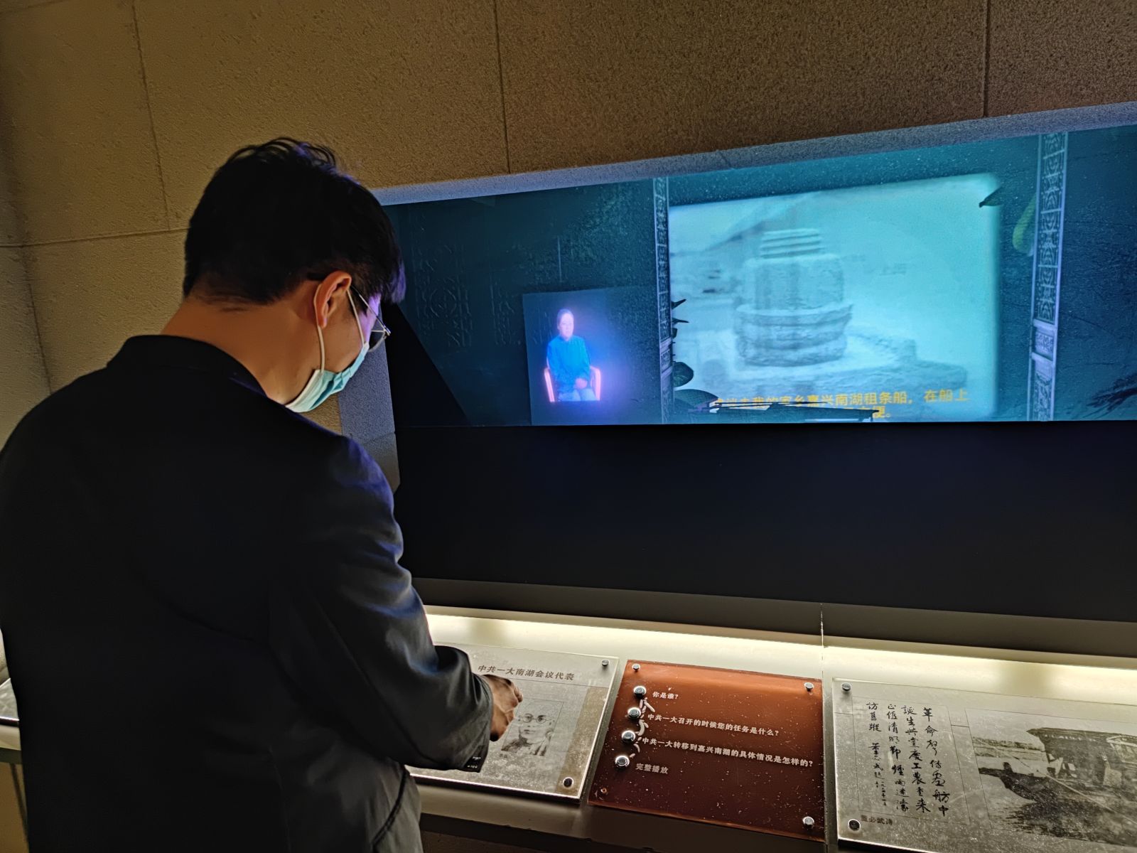 讲解员为党员们娓娓道来一张张旧照片,一件件老物件背后的故事,生动再现了浙江军民浴血奋战、救亡图存的不屈岁月。最打动人心的是“陈望道吃墨汁”的故事,让大家感受到“信仰的味道是甜的”。而通过多媒体手段,使广大党员在沉浸式互动场景教学中重温了“中共一大”的会议场景,感受到了共产党人的初心和使命。
