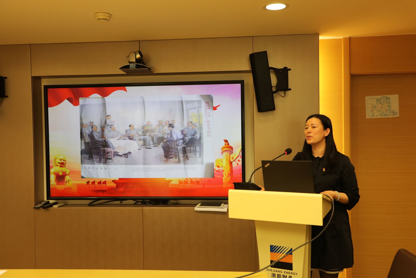 以“钱江潮——浙江现代革命历史陈列”为专题的展区位于浙江革命历史纪念馆的二楼,全景展示了浙江人民在中国共产党的领导下,经过了艰苦卓绝的浴血奋斗,最终取得浙江解放的伟大胜利和永不磨灭的光辉历程。活动中,浙能财务公司一支部紧扣“六个一”党员教育活动要求,现场开展了“聆听一个历史故事”以及“进行一项互动教学”活动。