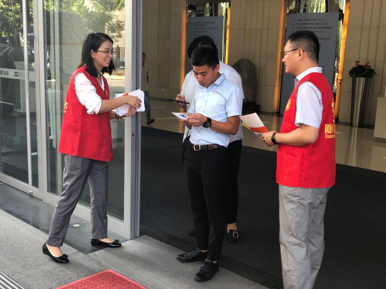 海翼财务公司支委带领全体党员以及公司员工积极响应本次志愿者活动,不畏午后严热,深入社区、街道、公交站点、大厦等处,分发《防范和打击非法集资》、《知法守法从我做起,远离金融违法犯罪》、《全面落实“三反”意见,加强改进反洗钱监管》等宣传材料,耐心地为群众讲解金融知识。