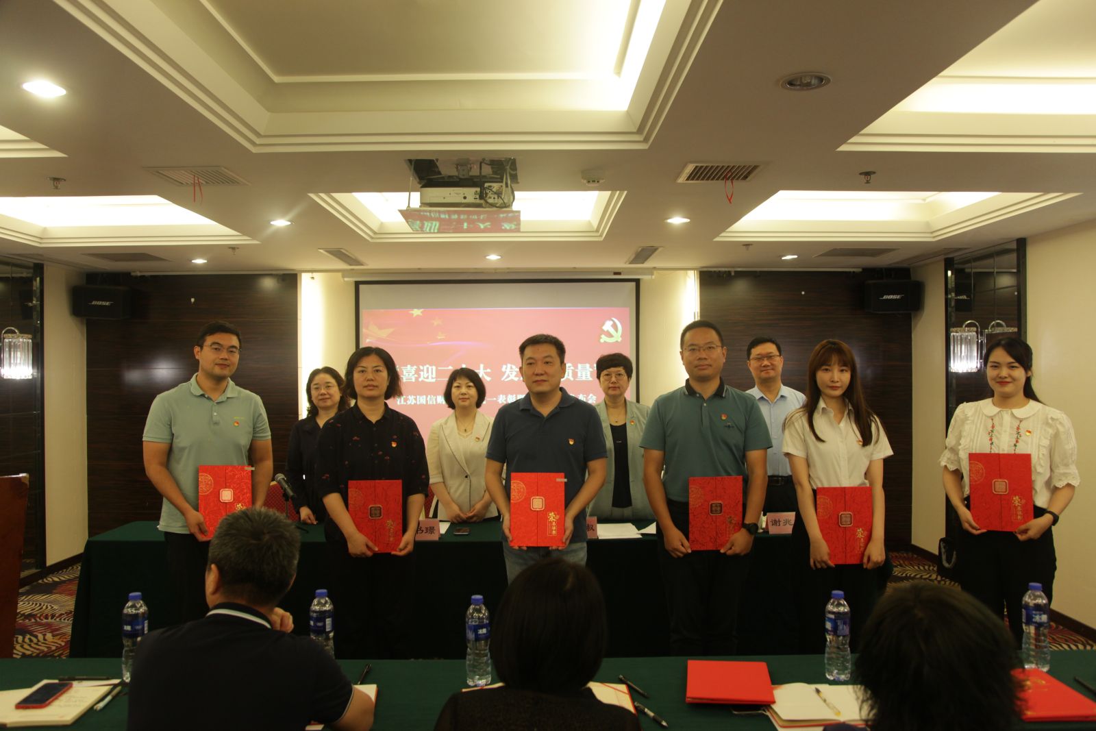 7月12日上午,江苏国信财务公司举办2022年“七一”表彰暨党建品牌发布会。会议全面学习贯彻落实集团党委七一表彰大会精神,总结公司上半年党建和经营亮点工作,对先进集体和个人进行了表彰,同时,正式发布了公司“红耀国信·融聚金彩”党建品牌。 党委书记张书璟出席会议并讲话,党委副书记、总裁周俊淑主持会议。
