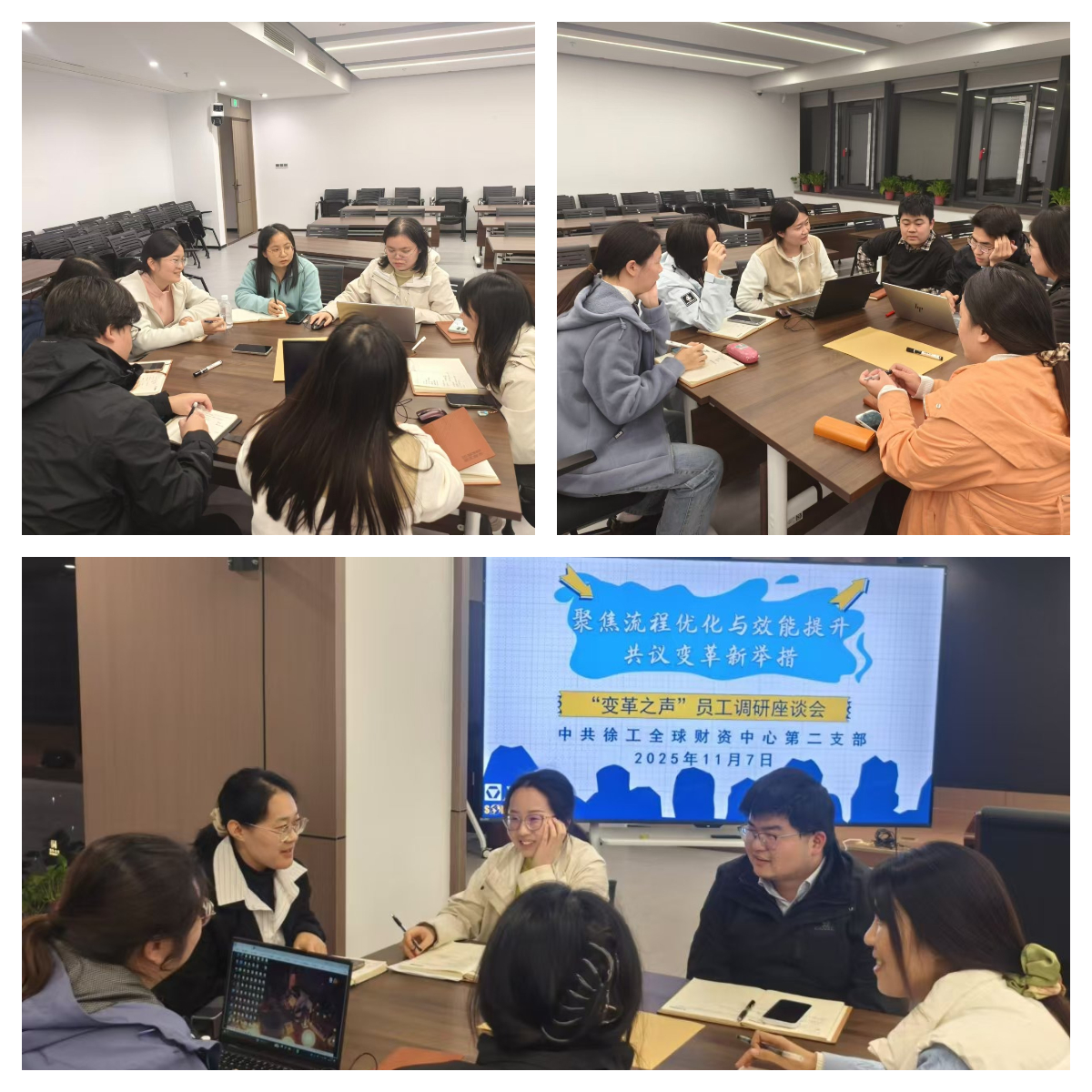 前期,通过“变革之声”调研问卷,收集了涵盖岗位适配与技能满足度、组织流程效率、工作饱和度、跨部门协作、上级管理效能等多个方面的诉求。本次座谈会则更进一步,聚焦“流程优化与效能提升”这一核心痛点,推动对话从“反映问题”向“共商方案”深化。