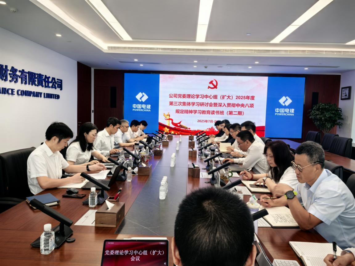 7月9日,公司党委举办理论学习中心组(扩大)2025年度第三次集体学习暨深入贯彻中央八项规定精神学习教育第二期读书班,原原本本学习了《党的十八大以来深入贯彻中央八项规定精神的成效和经验》《八项规定改变中国》,习近平总书记重要文章《锲而不舍落实中央八项规定精神,以优良党风引领社风民风》以及《党政机关厉行节约反对浪费条例》等有关内容,认真学习了党中央、集团党委关于集中整治违规吃喝等相关内容。公司党委书记、董事长杜明主持学习并讲话。公司党委领导班子参加学习,并联系自身思想和工作实际进行交流研讨、重点发言。