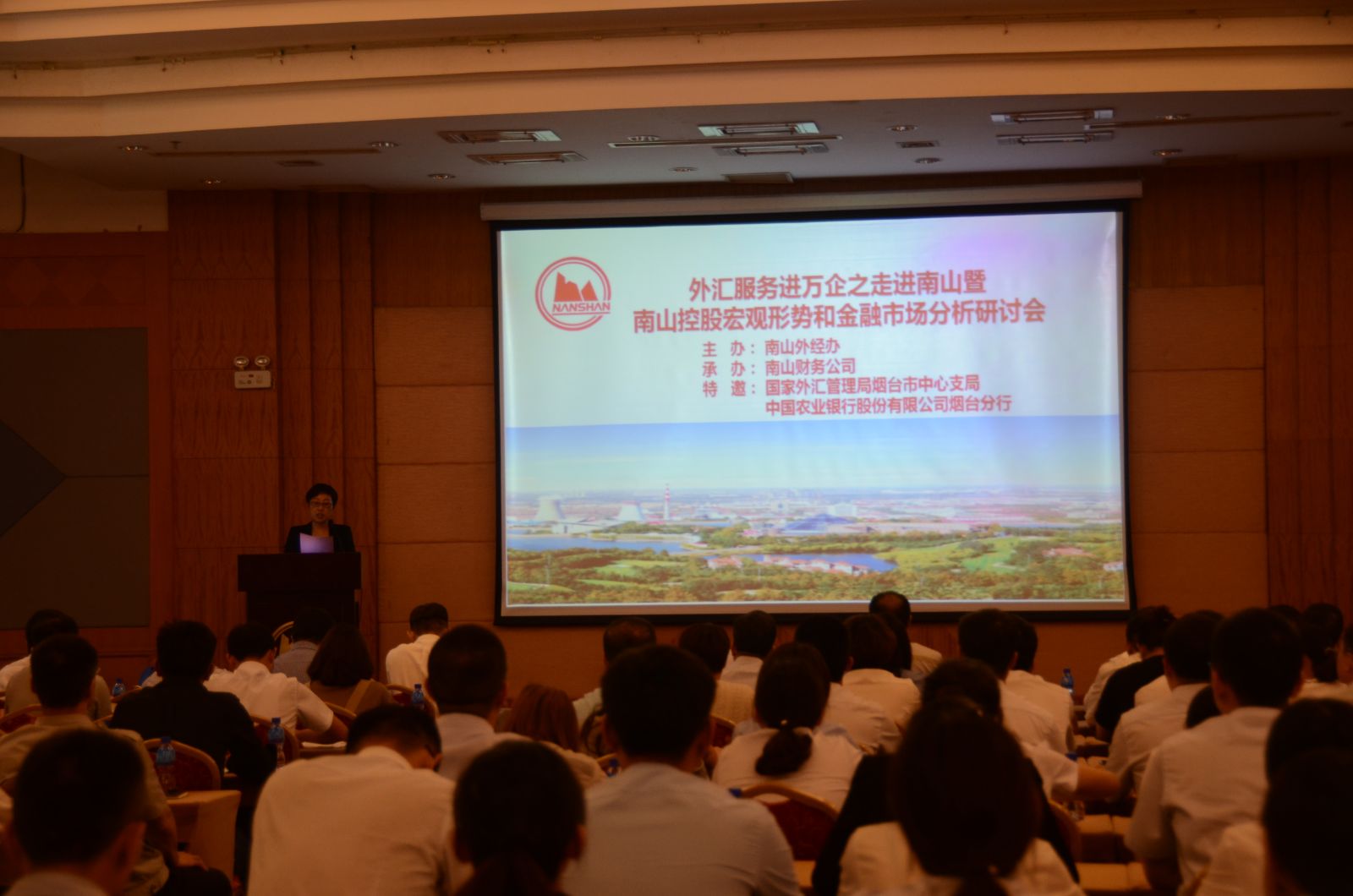 为建立及完善集团外汇业务管理架构,提高集团企业外汇政策和汇率风险意识,5月25日,南山财务公司联合集团外经办成功举办宏观形势和金融市场分析研讨会。烟台外汇管理局、龙口人民银行、中国农业银行总行及省行相关领导和集团企业领导班子成员、财务部、资金部等120余人参会。