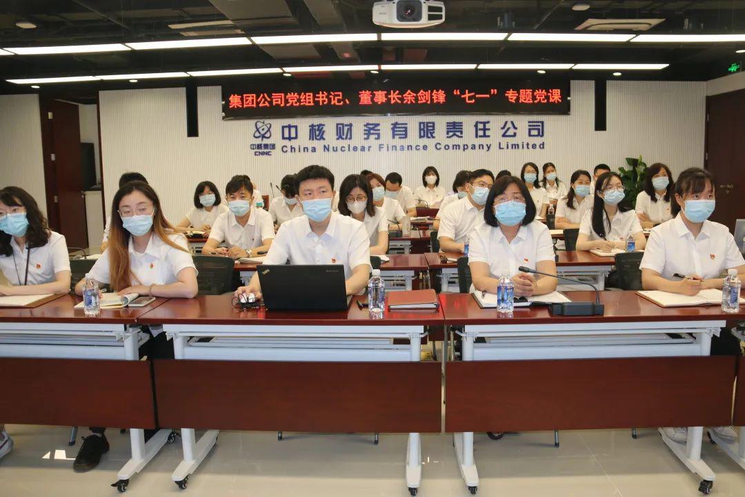 7月1日,公司党委组织参加集团公司党组书记、董事长余剑锋同志“七一”专题党课。公司全体党员和入党积极分子参加学习。大家纷纷表示,要立足自身岗位,积极践行“责任、安全、创新、协同”企业核心价值观,争做“两弹一星”精神、“四个一切”核工业精神和“强核报国 创新奉献”新时代核工业精神的传承者,以时不我待的紧迫感和责无旁贷的使命感,为集团公司高质量发展贡献更多金融智慧和力量。