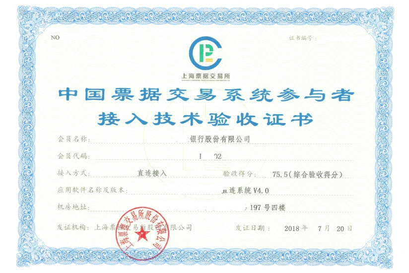 自提交全直连接入申请以来,财务公司积极参加各项培训,严格按照上海票交所的工作安排有序开展各项工作, 7月底完成全直连系统联调测试工作,8月中旬顺利通过验收测试和现场验收,9月7日,票交所向财务公司发放《中国票据交易系统参与者接入技术验收证书》, 9月8日,顺利完成证书绑定、系统登录、自由格式报文发送、业务查询查复等一系列上线工作,确保成功上线。