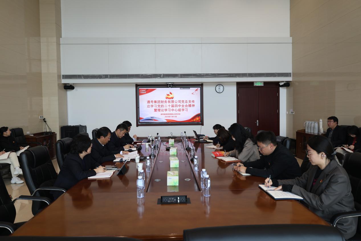 11月12日财务公司召开专题宣贯会,深入学习贯彻党的二十届四中全会精神,全面落实集团公司“六个坚持”原则与“1241”发展思路。公司党总支书记、董事长戴学兵主持会议并讲话,全体干部职工参会。