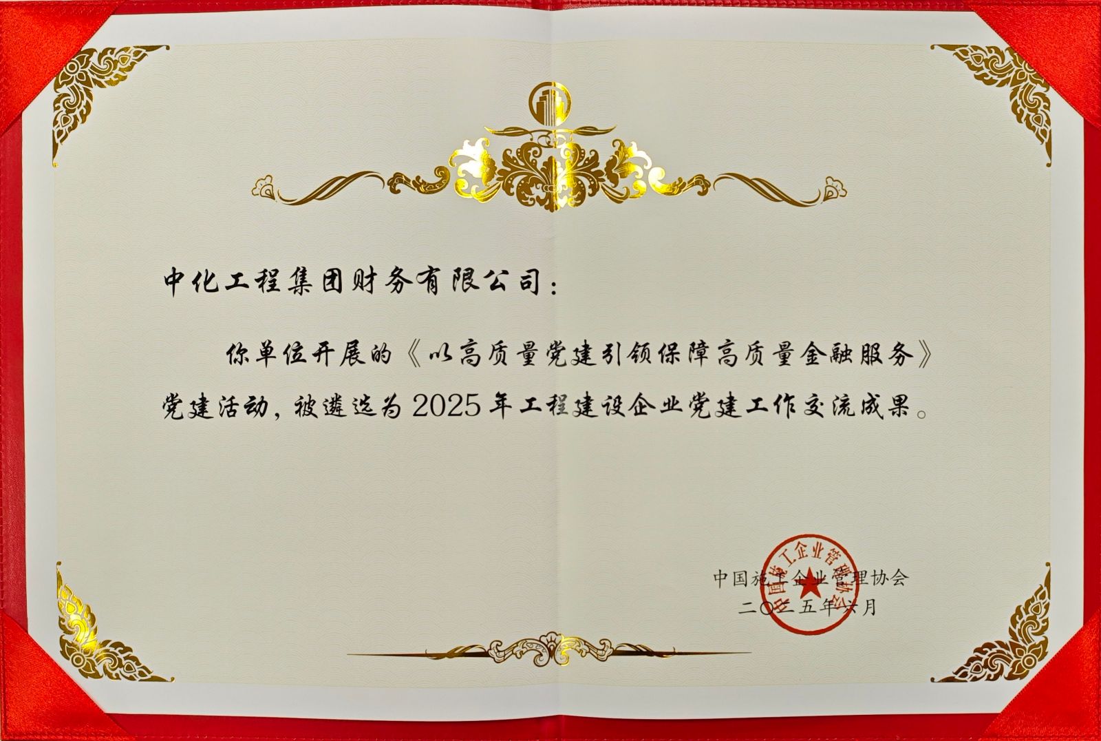 公司党总支开展的《以高质量党建引领保障高质量金融服务》党建活动,入选2025年工程建设企业党建工作交流成果。