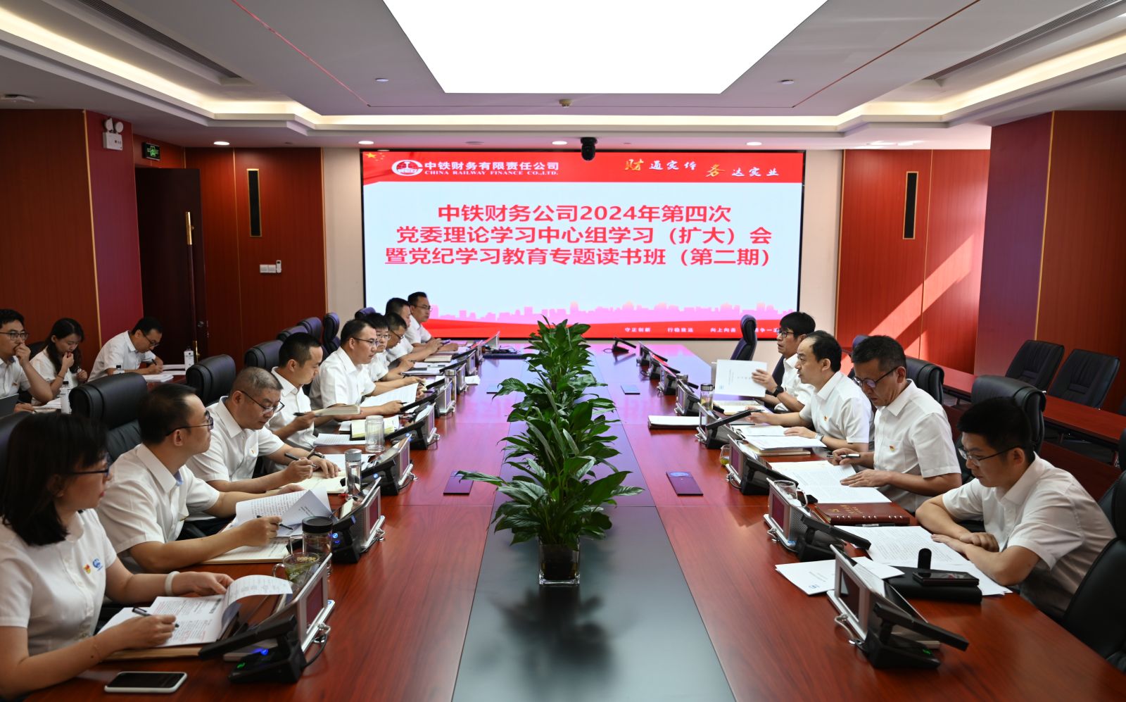近日,中铁财务公司党委召开2024年第四次理论学习中心组学习(扩大)会暨党纪学习教育专题读书班(第二