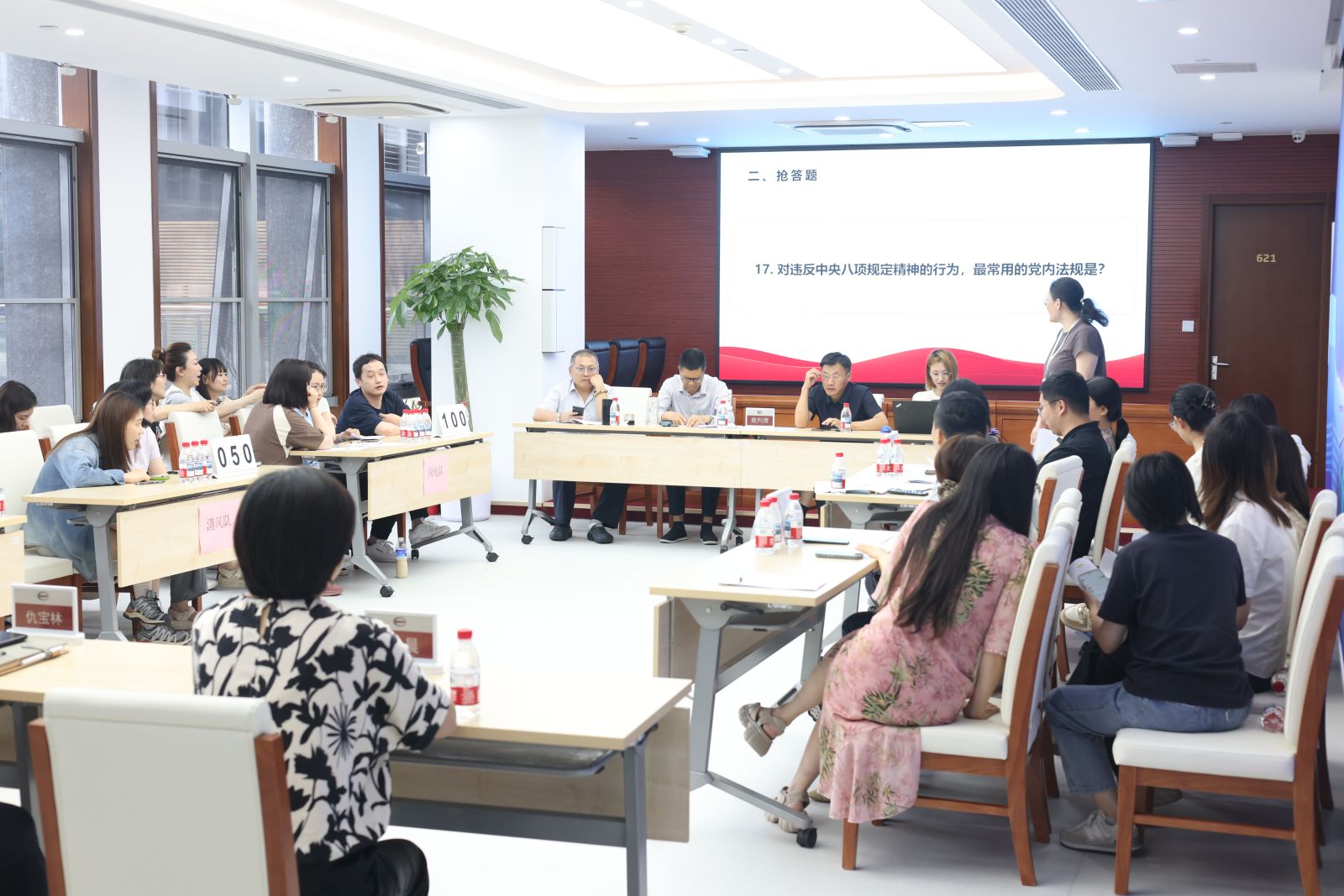 1个多小时赛程中,5支参赛队围绕上百个纪律知识点角逐,赛场气氛紧绷。必答题环节,选手答题干脆,有的参赛队迅速答题拉开比分;抢答题环节,选手抢答动作迅速,现场掌声与惋惜声交替。风险题环节难度大增,题目暗藏玄机,有的参赛队选高分题,答对喝彩、答错被反超,竞争十分激烈。有的参赛队凭借对“公务接待规范”细节的精准掌握,赢得现场啧啧称叹。最终两支同分参赛队加赛一决雌雄,全场屏声息气,紧盯结果。当一等奖得主产生时,全场欢呼雀跃。