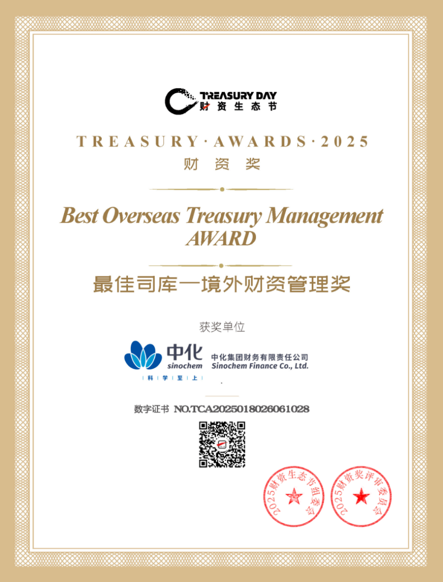 2025年9月25日—26日,2025财资生态节隆重召开,中化集团财务有限责任公司在会上荣获“2025财资奖:最佳司库——境外财资管理奖”。该奖项旨在表彰在司库管理领域取得突出成就的企业,这也是公司第二次荣获该奖项,充分体现了业界对中化财务公司司库管理能力、境外资金运营创新实践的认可。