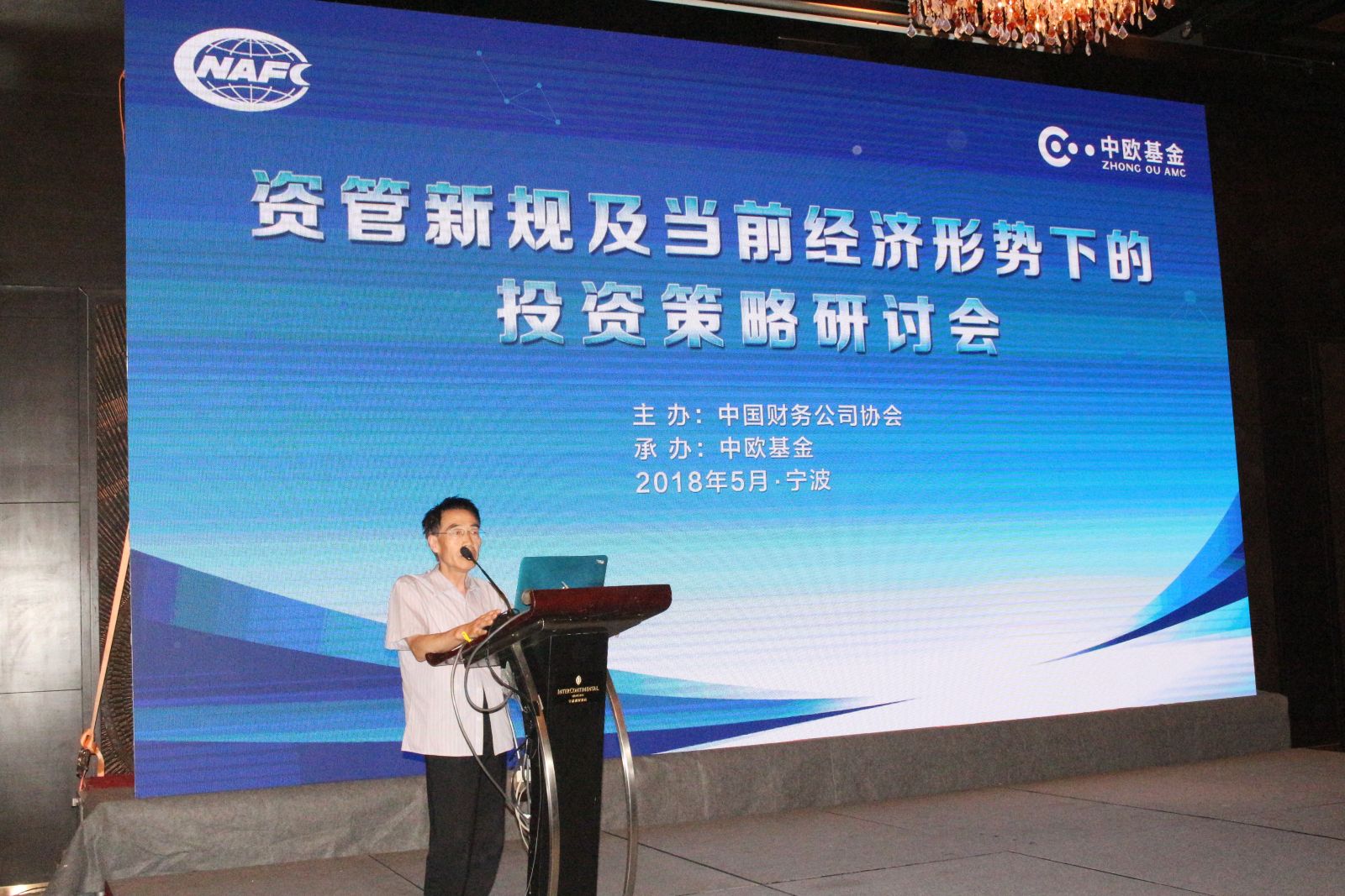 为使财务公司更好地了解宏观经济发展趋势和资管新规,交流投资业务经验,中国财务公司协会(以下简称“中国财协”)于2018年5月10日-11日在浙江宁波举办“资管新规及当前经济形势下的投资策略研讨会”,会议由中欧基金管理有限公司承办,中国财协党委书记、常务副会长张电中出席本次研讨会并致辞,来自财务公司行业近250人参加了研讨会。
