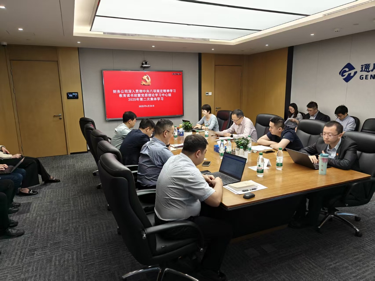 4月24日,通用技术财务公司举办深入贯彻中央八项规定精神学习教育读书班暨党委理论学习中心组2025年第二次集体学习。此次学习由公司党委书记、总经理岳海涛主持,公司领导班子成员、全体中层、团支部书记参加学习。