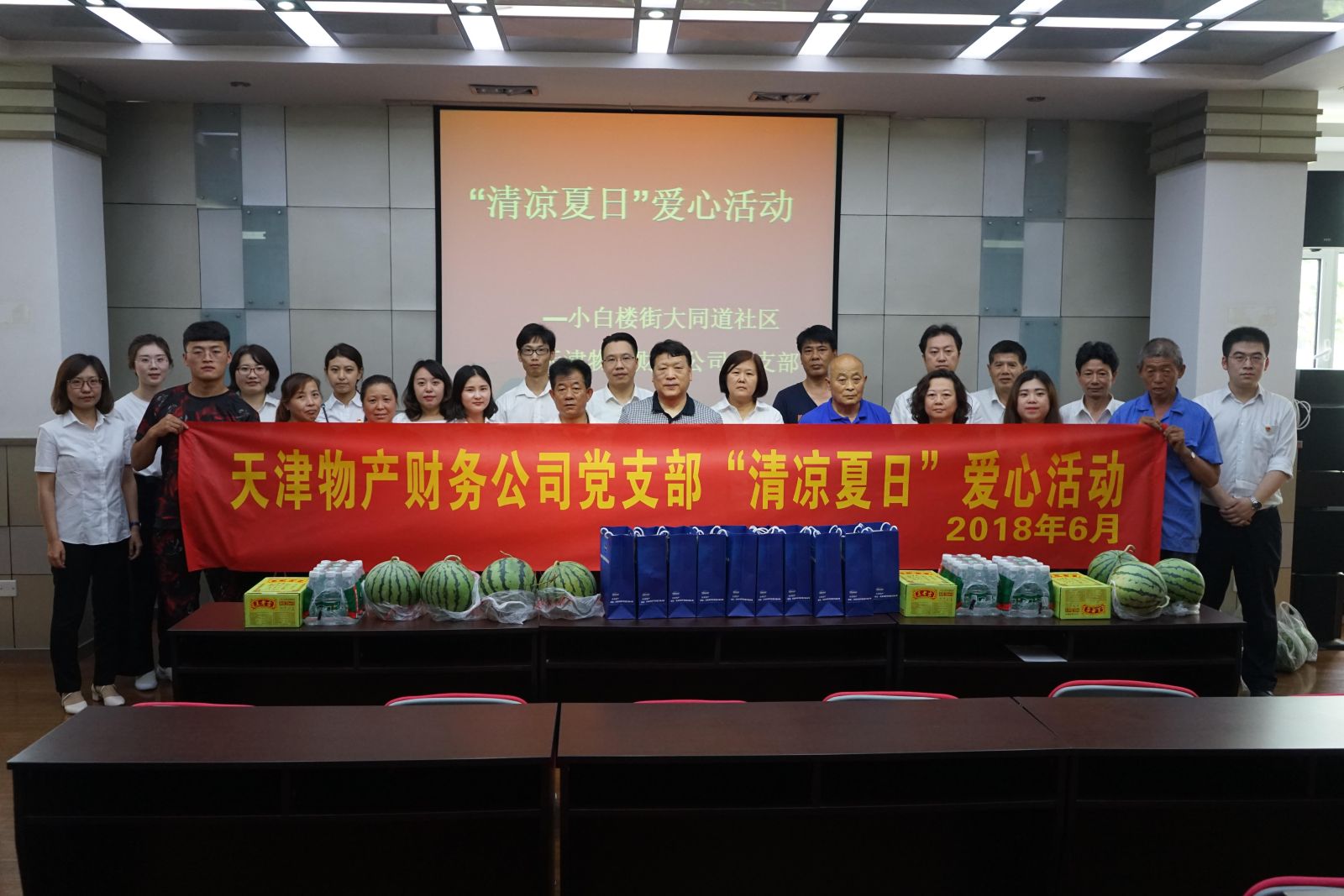 6月21日,公司党支部、团支部联合大同道社区共同开展“清凉夏日”爱心活动,慰问社区内环卫工人。全体党员、团员及民主党派人士积极参加,为环卫工人送去西瓜、绿豆、毛巾、香皂等防暑降温食品用品。小白楼街及大同道社区领导对公司志愿活动给予高度评价,对大家的关心和支持表示衷心感谢。