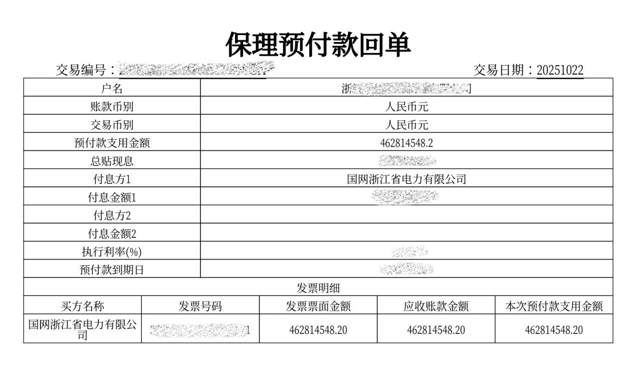 今年5月,浙能财务了解到,浙能集团下属电厂电费到账时间较往年有所延后,造成一定资金安全风险。为破解这一难题,浙能财务资金业务团队在集团财务部指导下迅速行动,围绕企业电费结算模式开展深度研判,积极与工商银行、农业银行、建设银行三家主要电费结算银行取得联系,推动浙能北电、浙能乐电、浙能舟电、浙能台二电办理供应链金融业务。经过近5个月的努力,该业务成功落地,四家电厂电费收款到账时间较原周期成功提前1~5个自然日,有效提升应收账款周转率。同时,通过提前回笼电费资金,浙能财务月底资金运营状况得以同步优化,公司月底头寸得到快速补充,流动性核心指标数据显著提升,进一步保障了集团整体资金安全运营和保供能力。