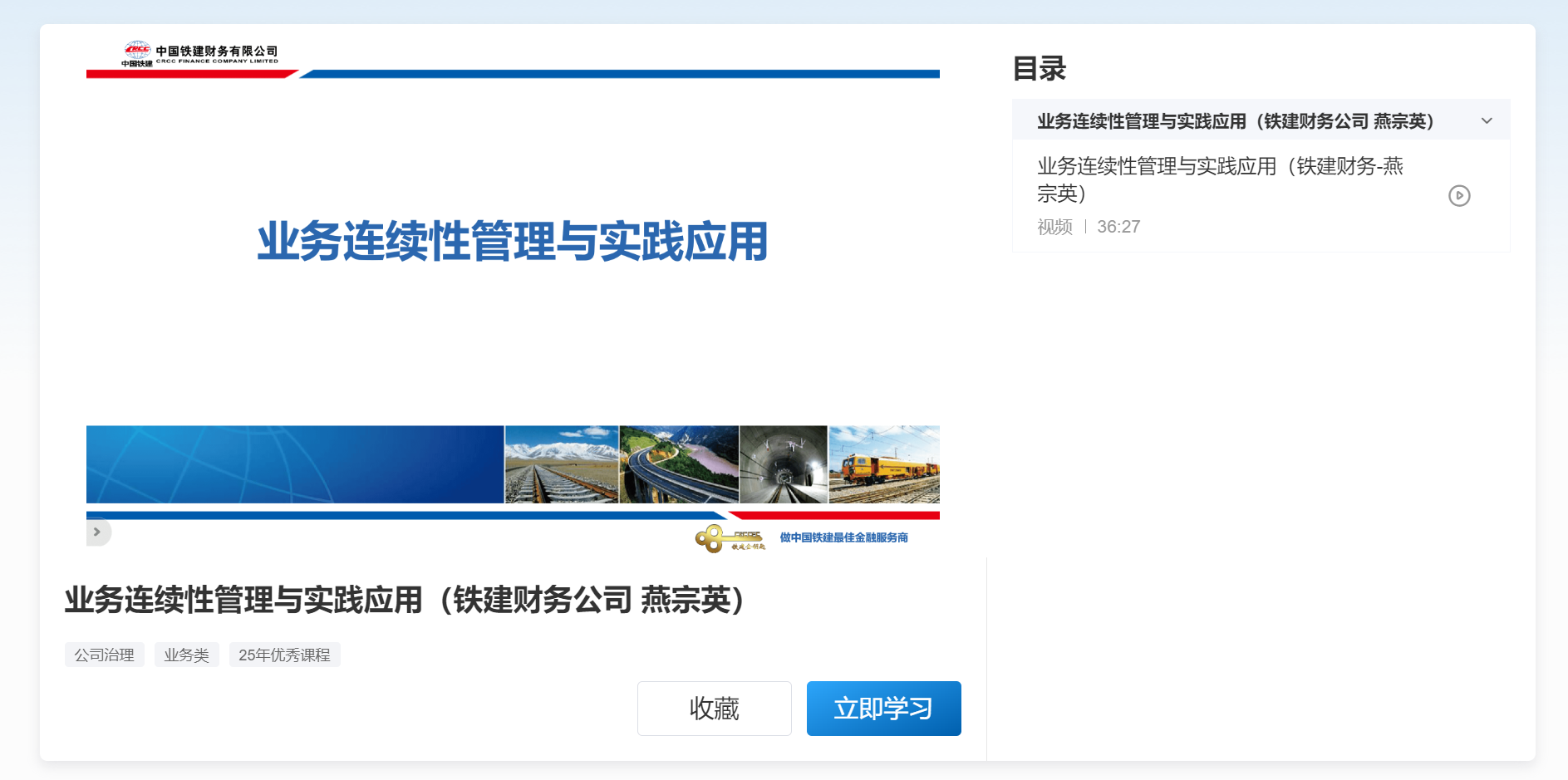 课程名称:《铁建财务应急管理体系建设实践》
