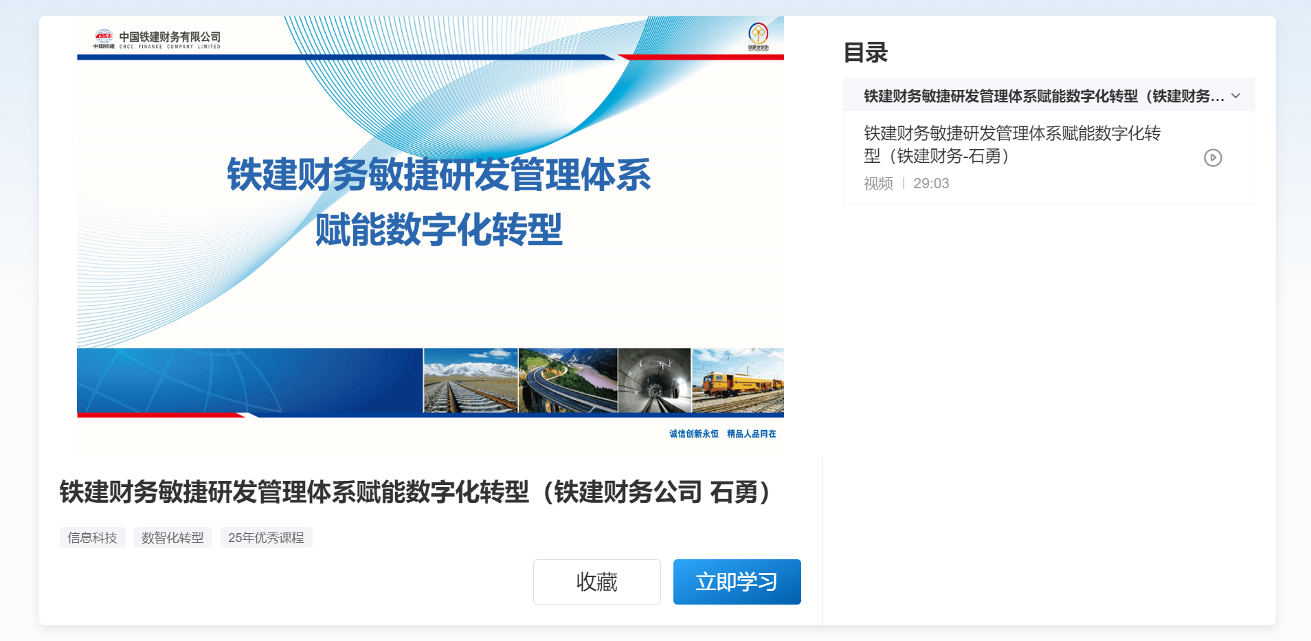 课程名称:《铁建财务敏捷研发管理体系赋能数字化转型》