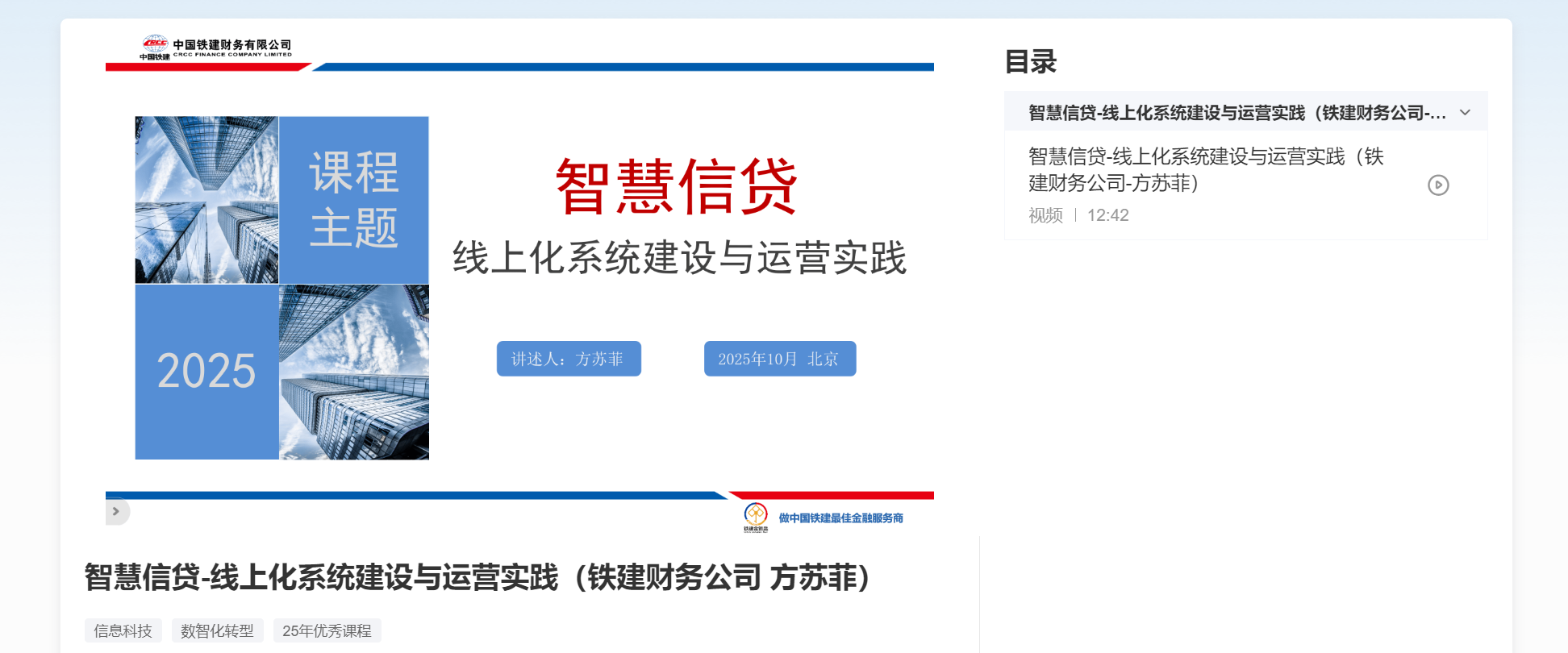 课程名称:《智慧信贷一线上化系统建设与运营实践》
