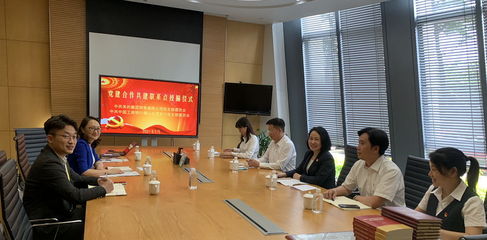 2021年5月7日上午,美的集团财务有限公司党支部与工商银行佛山北滘支行党支部在美的总部召开党建共建联系点授牌仪式。美的集团财务公司党支部成员和佛山北滘支行党支部支委成员及党员业务骨干参加了授牌仪式。