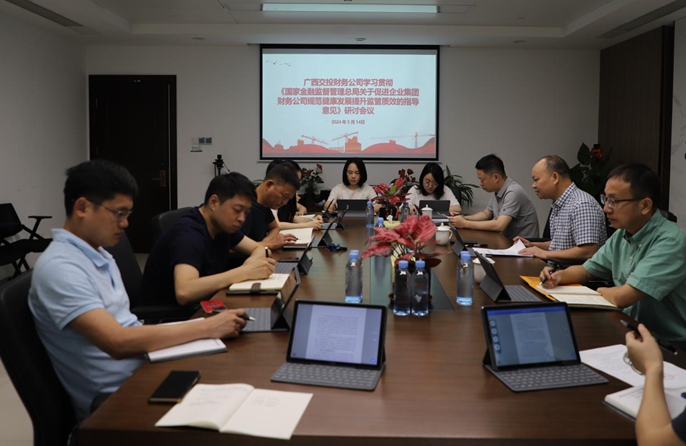 近日,广西交通投资集团财务公司召开学习贯彻《关于促进企业集团财务公司规范健康发展提升监管质效的指导意