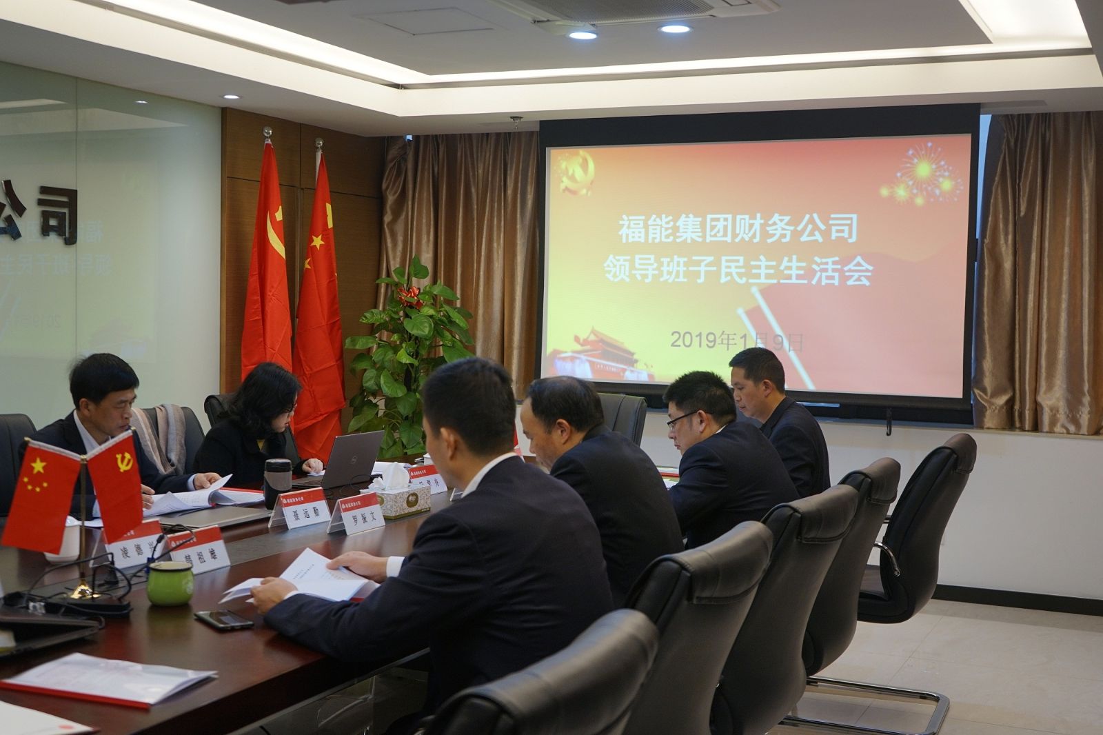 2019年1月9日,福能集团财务公司领导班子在会议室召开了以“强化创新理论武装,树牢‘四个意识’,坚定‘四个自信’,勇于担当作为,以求真务实作风坚决把党中央决策部署落到实处。”为主题的2018年度领导班子民主生活会。集团第二派出监事会主席聂远勤等到会指导,公司领导罗振文、韩祖雄、朱 辉,以及公司组织人事、纪检监察有关人员参加了会议。会议由公司支部书记、总经理罗振文主持。