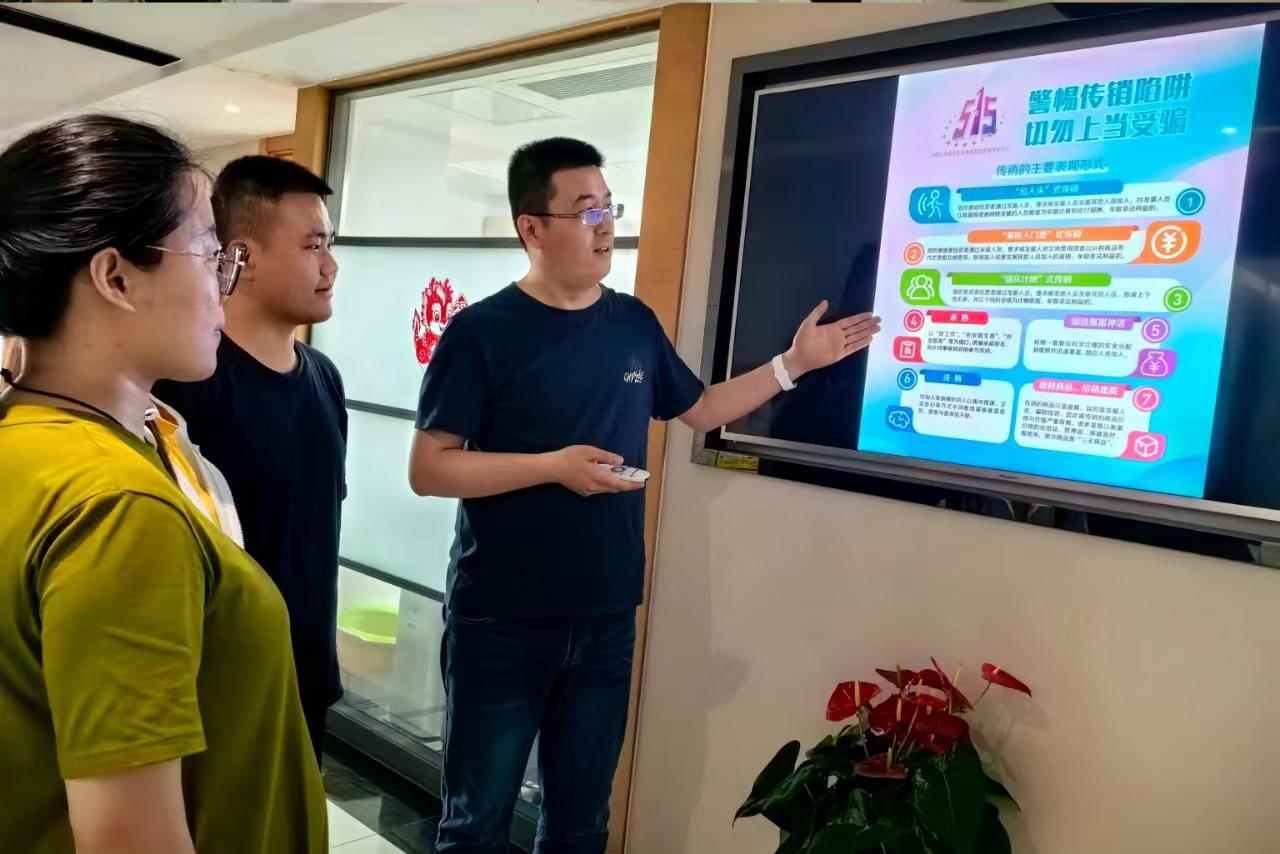 连云港港口财务公司利用营业场所电子屏播放宣传海报,并制作相关知识普及宣传图发布至微信公众号,主动宣