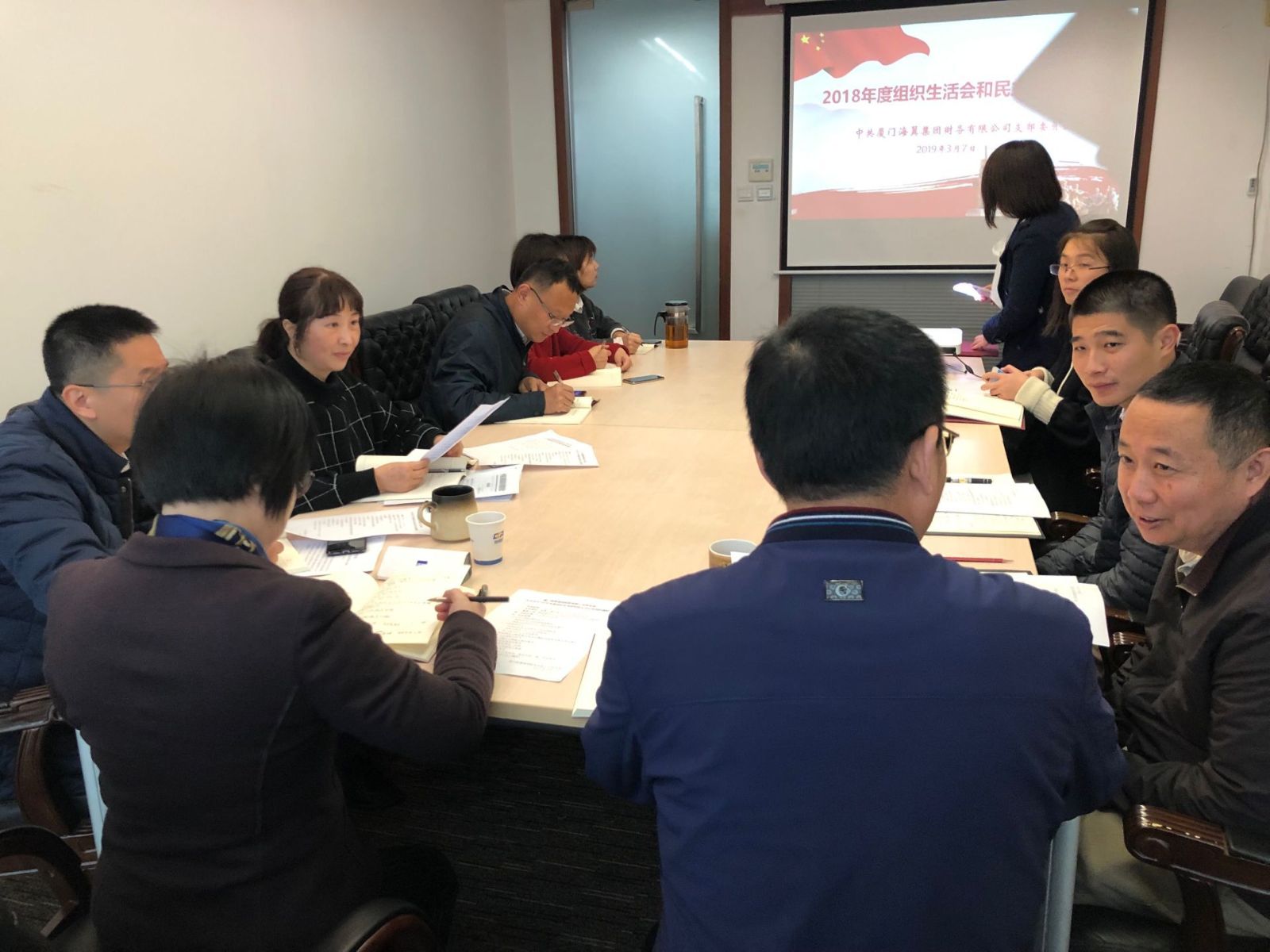 2019年3月7日,根据海翼集团党委的要求,我司党支部开展2018年度组织生活会和民主评议。一场将思想教育、党性分析、整改落实相结合的高质量组织生活会就此展开。
