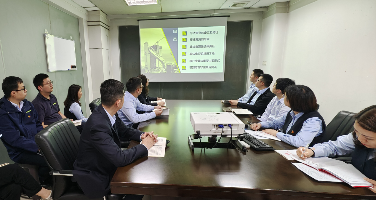 会上,结合财务公司特点,宣传委员向全体党员宣传防范非法集资知识,并要求大家落实到日常工作中,并向周围群