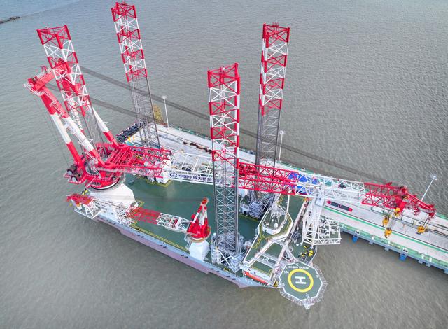 它还有四根“大长腿”,每根131米,相当于45层楼高。该款风电安装平台不仅“身高腿长”,而且“力大无穷”,