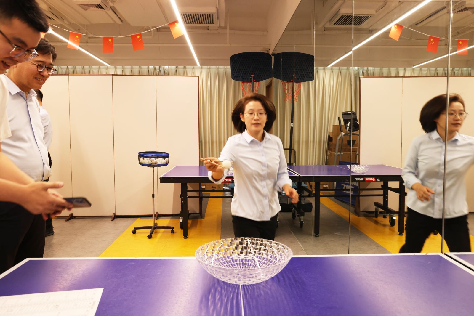 在乒乓球单打循环赛中,选手们一个个精彩的防守和绝杀都引起了大家阵阵喝彩;在双人协作颠球项目中,大家全神贯注、配合默契,既体现个人手眼协调能力,又考验团队协作配合;在夹乒乓球项目中,有乒乓球顺利夹到盆里的欢呼雀跃,也有掉落瞬间的扣人心弦;在乒乓球投篮项目中,有的选手采取保守策略,力求稳健得分,但更多选手尝试大胆“投篮”方式,现场气氛随之达到高潮。
