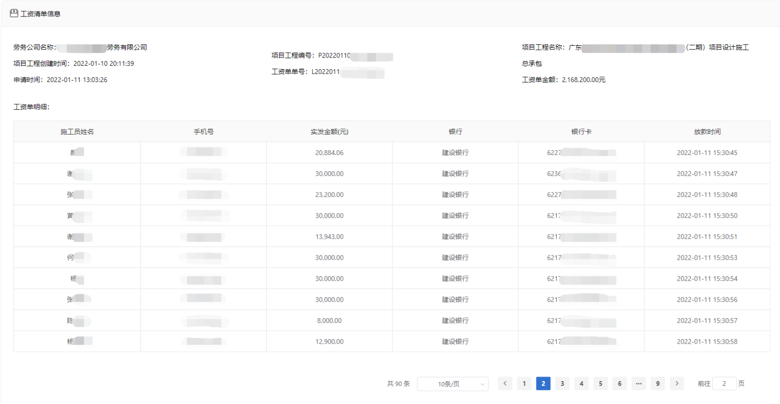 1月11日,广晟财务公司通过产融数字化资金网链平台成功为华建集团下属企业中南建设发放首笔惠民贷业务,平台将信贷资金从广晟财务公司账户自动划转至中南建设的银行账户,再自动划转至劳务分包商的银行账户,最终线上联动建设银行为102位农民工发放工资共计228.96万元,该平台从接收广晟财务公司指令后仅需几分钟就将工资发放到位。