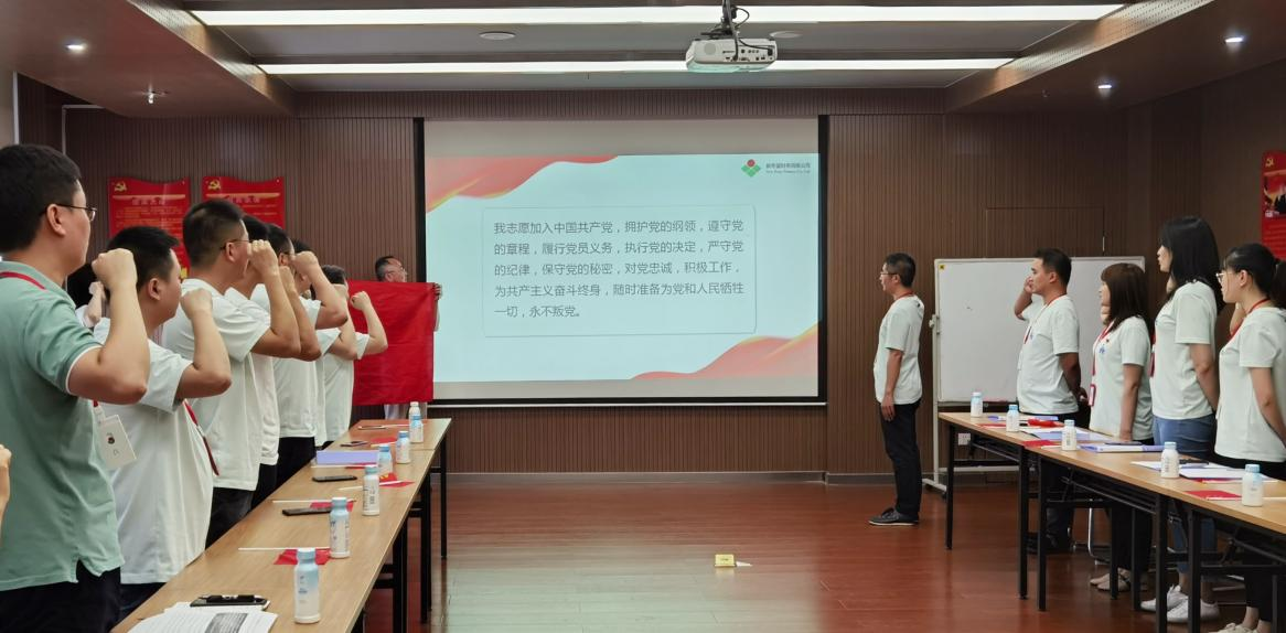 入党誓词是每一位共产党员的初心和承诺,更是为党和人民奋斗终身的责任与担当。面对鲜红的党旗,新希望财务公司全体党员和员工高举右手,再次庄严宣誓:“我志愿加入中国共产党……随时准备为党和人民牺牲一切,永不叛党。”铿锵有力的字句,时刻提醒着我们所肩负的神圣使命和责任,不断强化对我党的忠诚及对共产主义事业的不懈追求,激励新时代的共产党员和中国人民以昂扬的士气、进取的心态和创新的精神践行入党誓词,以踏实的工作态度和优秀的业绩为公司的发展、为国家的建设贡献力量。